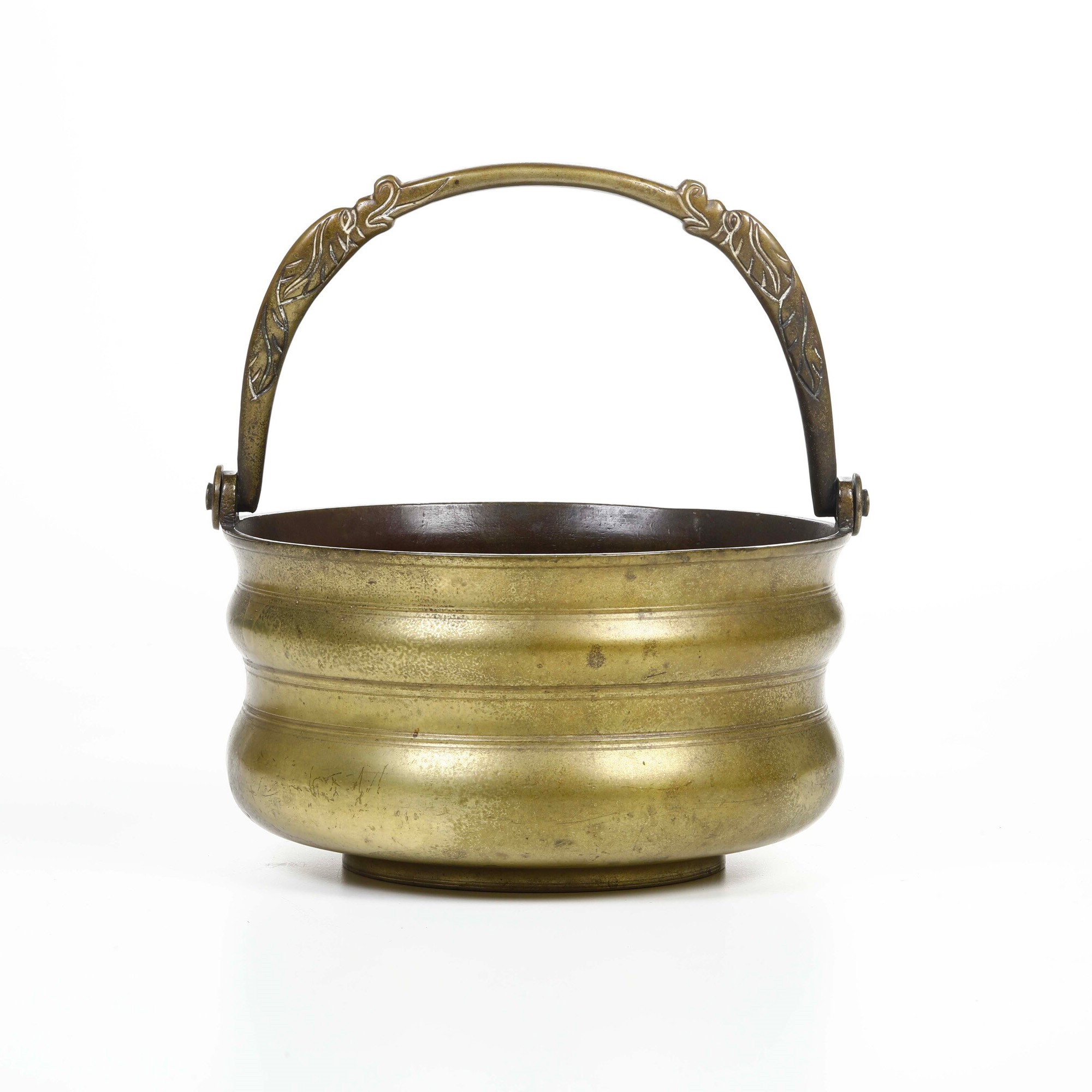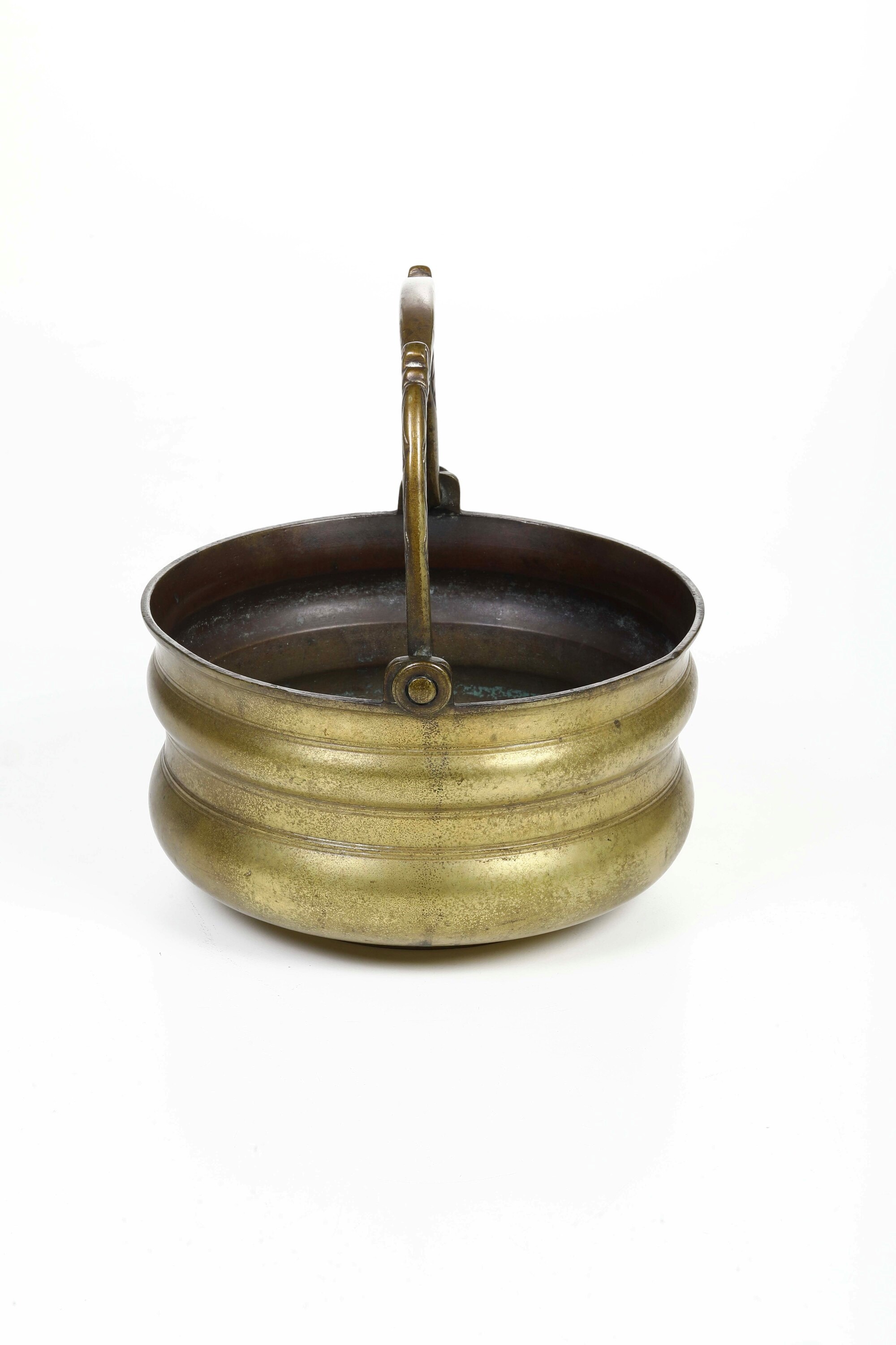 Secchiello con manico in bronzo inciso. XIX secolo