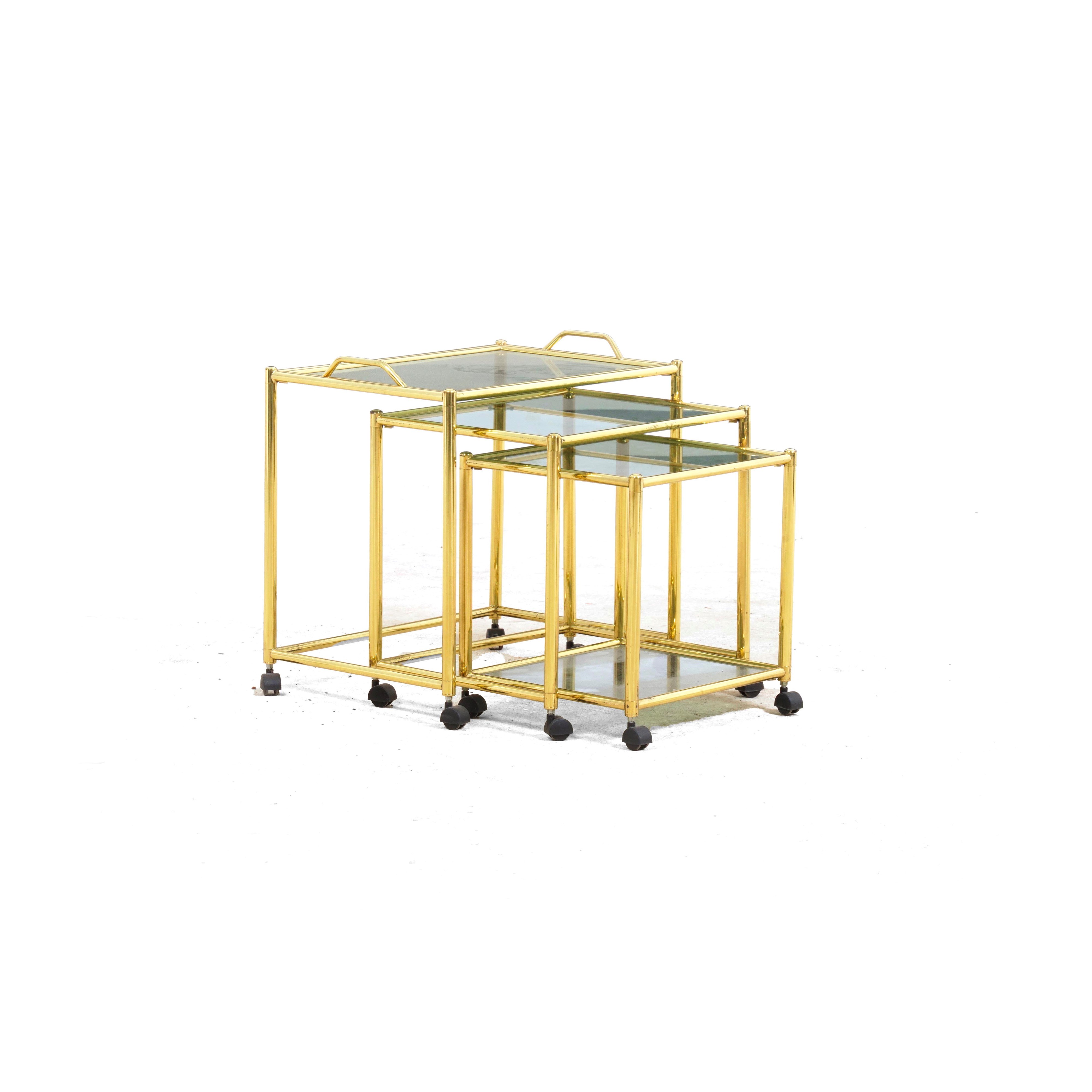 Tre tavolini a nido in ottone. XX secolo