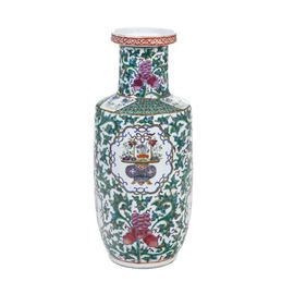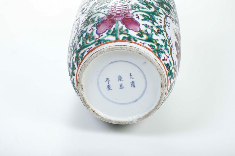 Vaso in porcellana Famiglia verde a motivi naturalistici, Cina, XX secolo