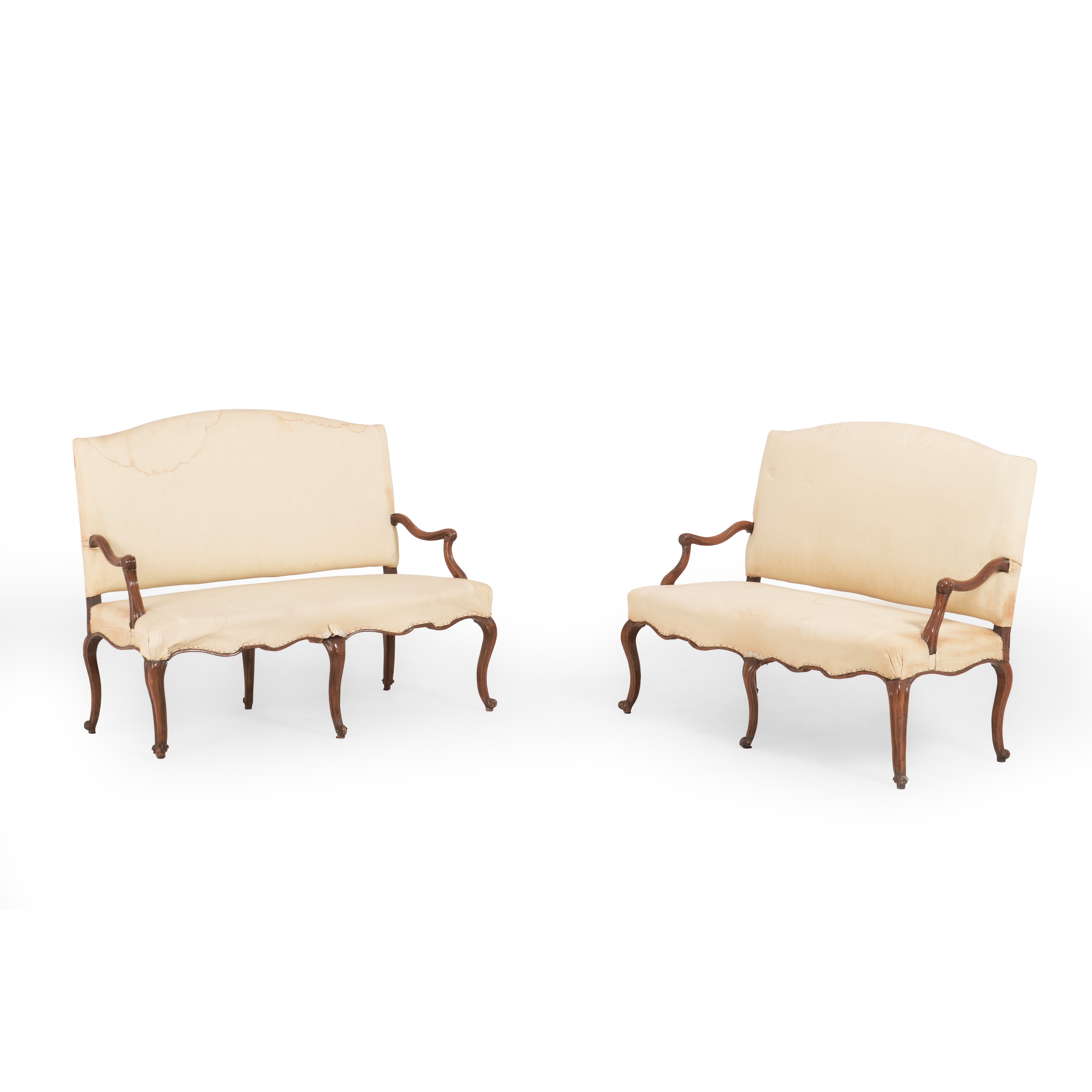 Coppia di divani in legno intagliato. XVIII secolo