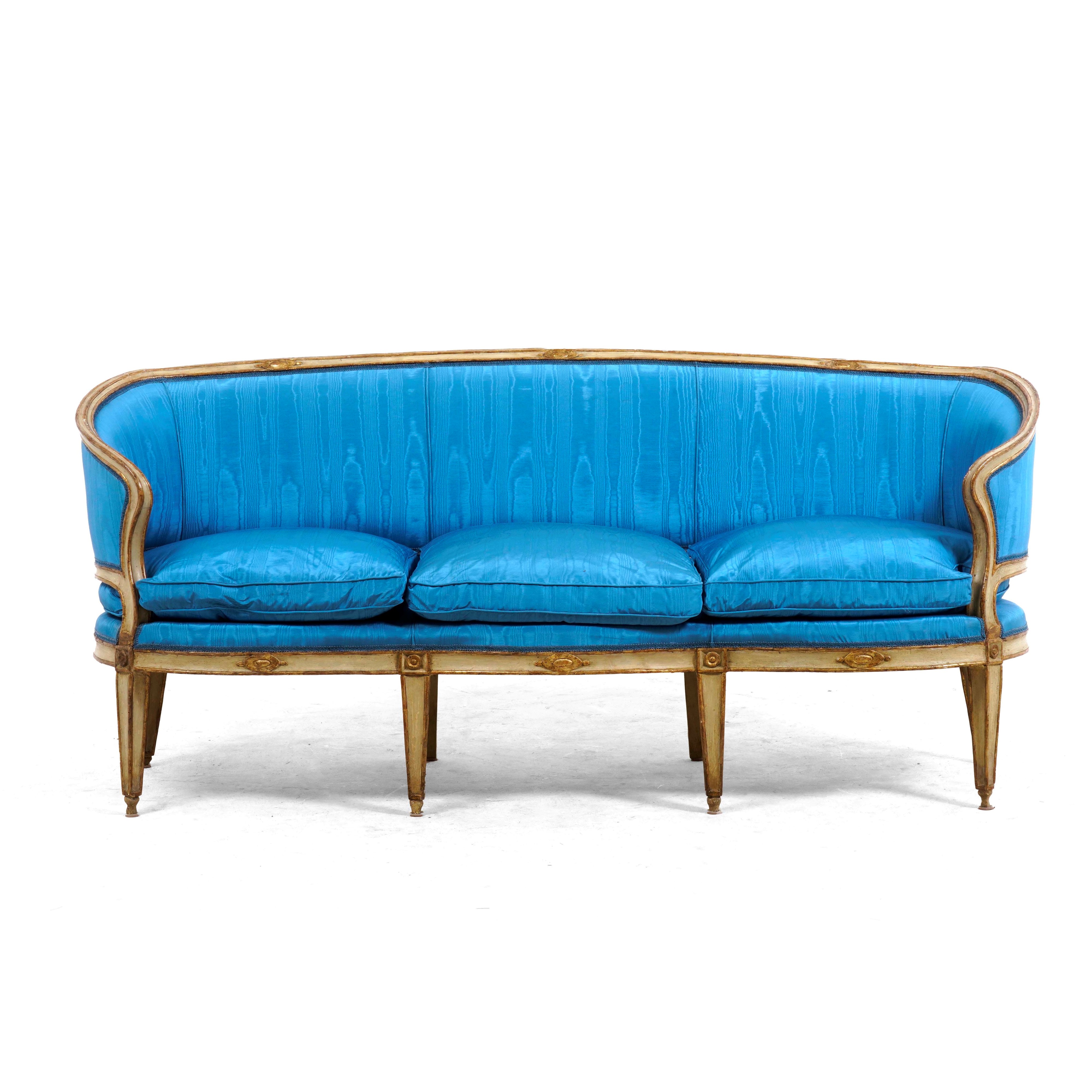 Divano a tre posti in legno dipinto. XIX secolo