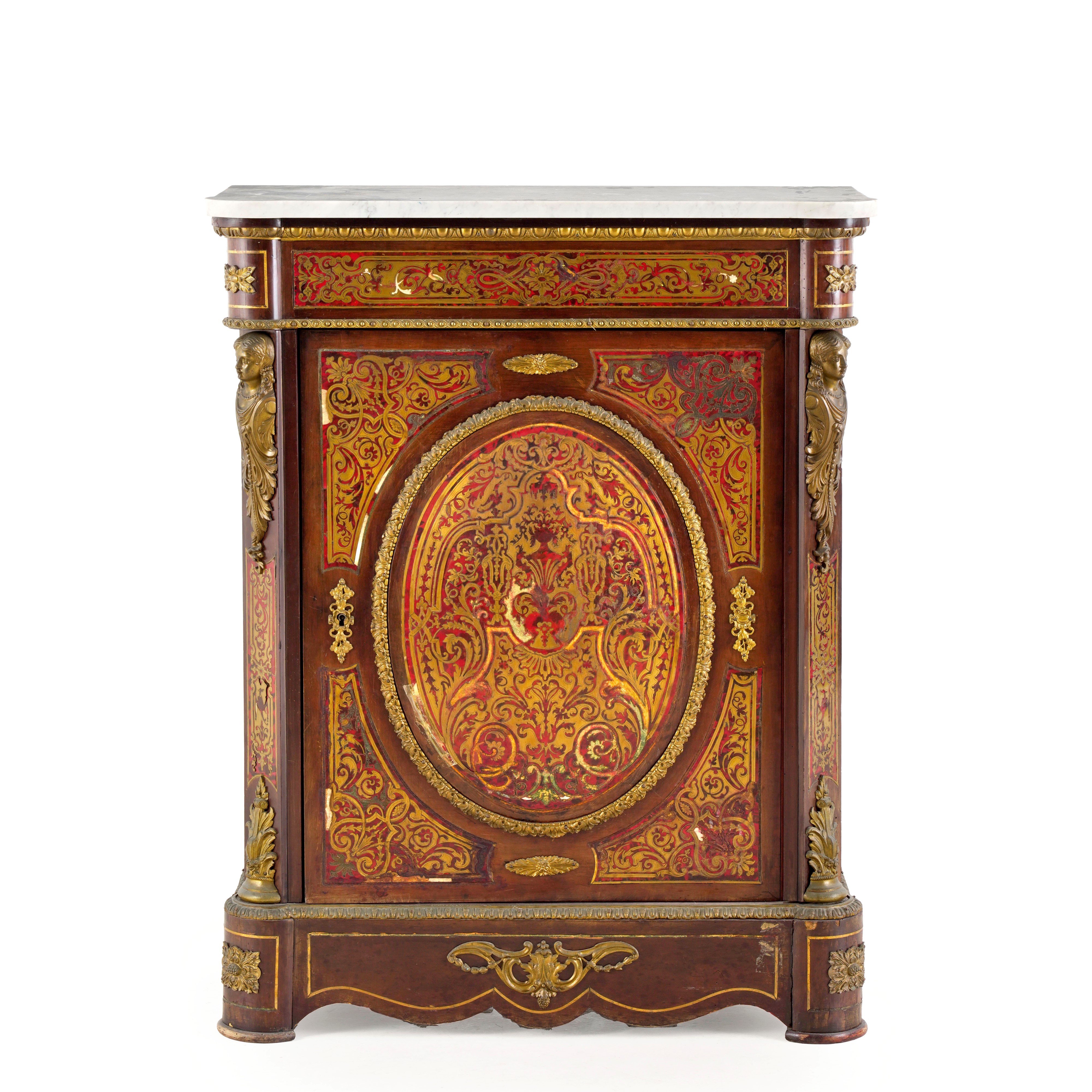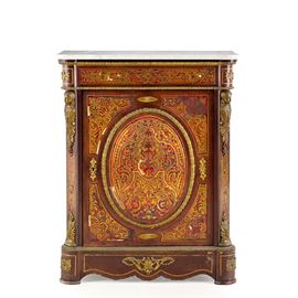A un'anta. Applicazioni decorative e intarsi in metallo dorato. Piano sagomato in marmo