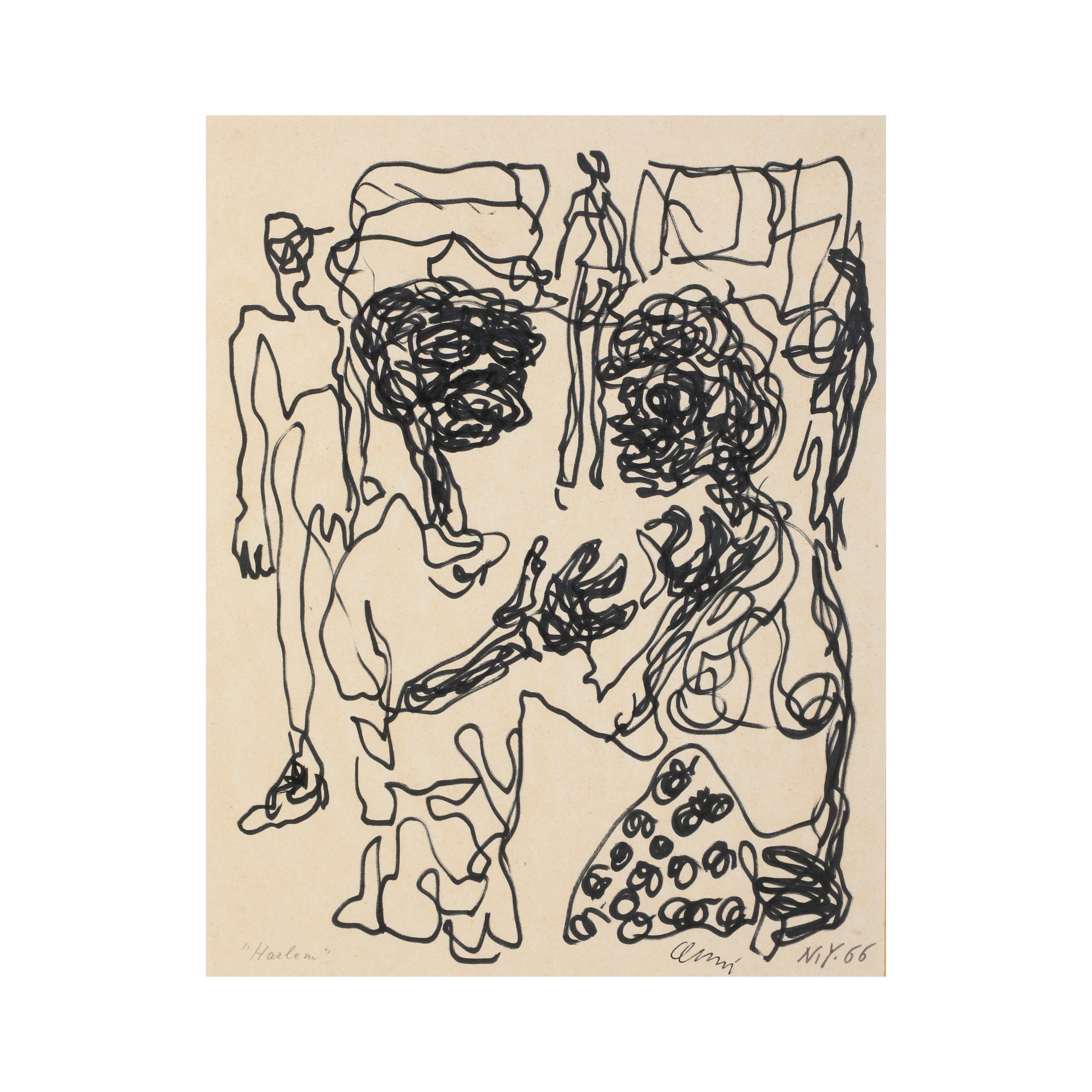 Pennarello nero su carta. Firmato "Cenni" e datato New York 1966; entro cornice