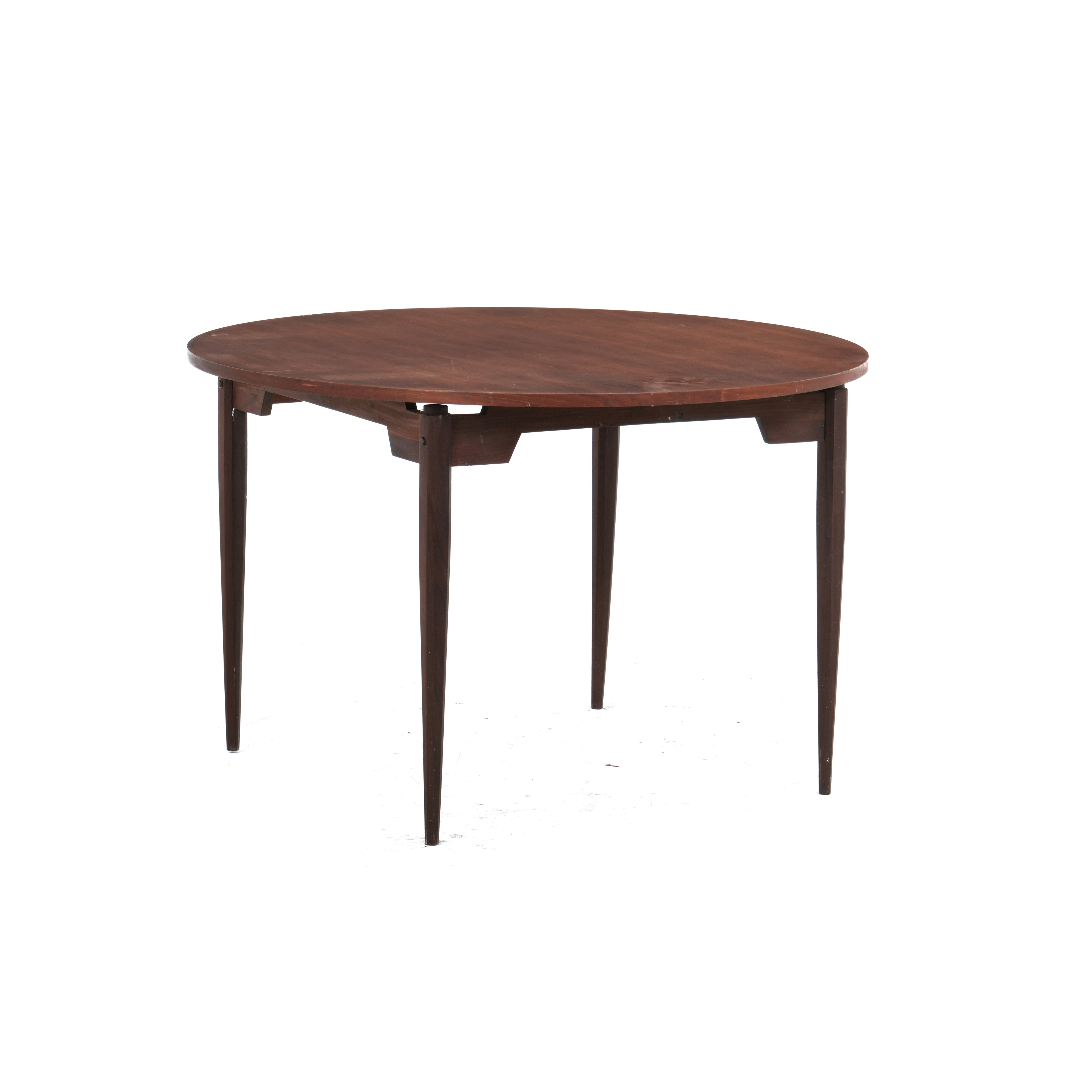 Tavolo circolare in legno con quattro gambe sfaccettate, XX secolo