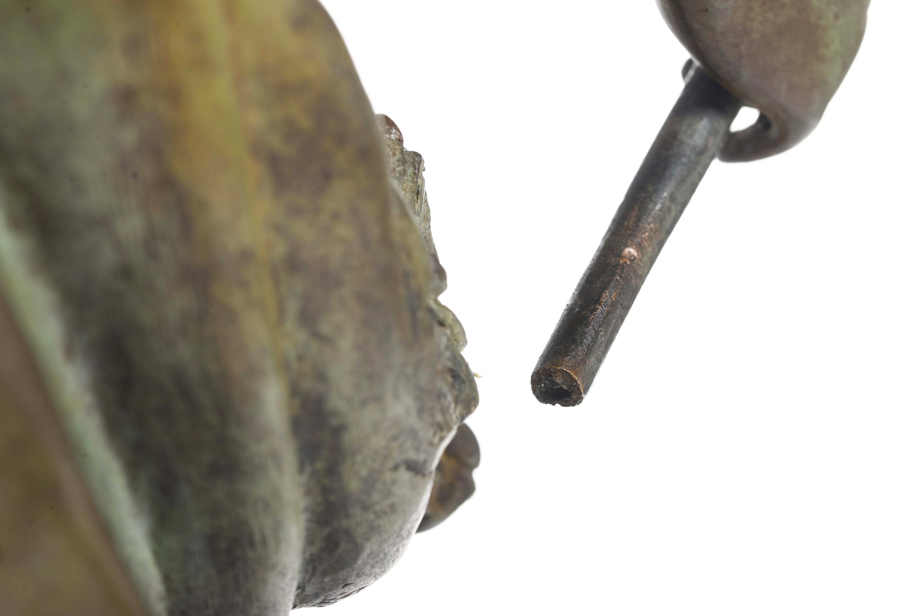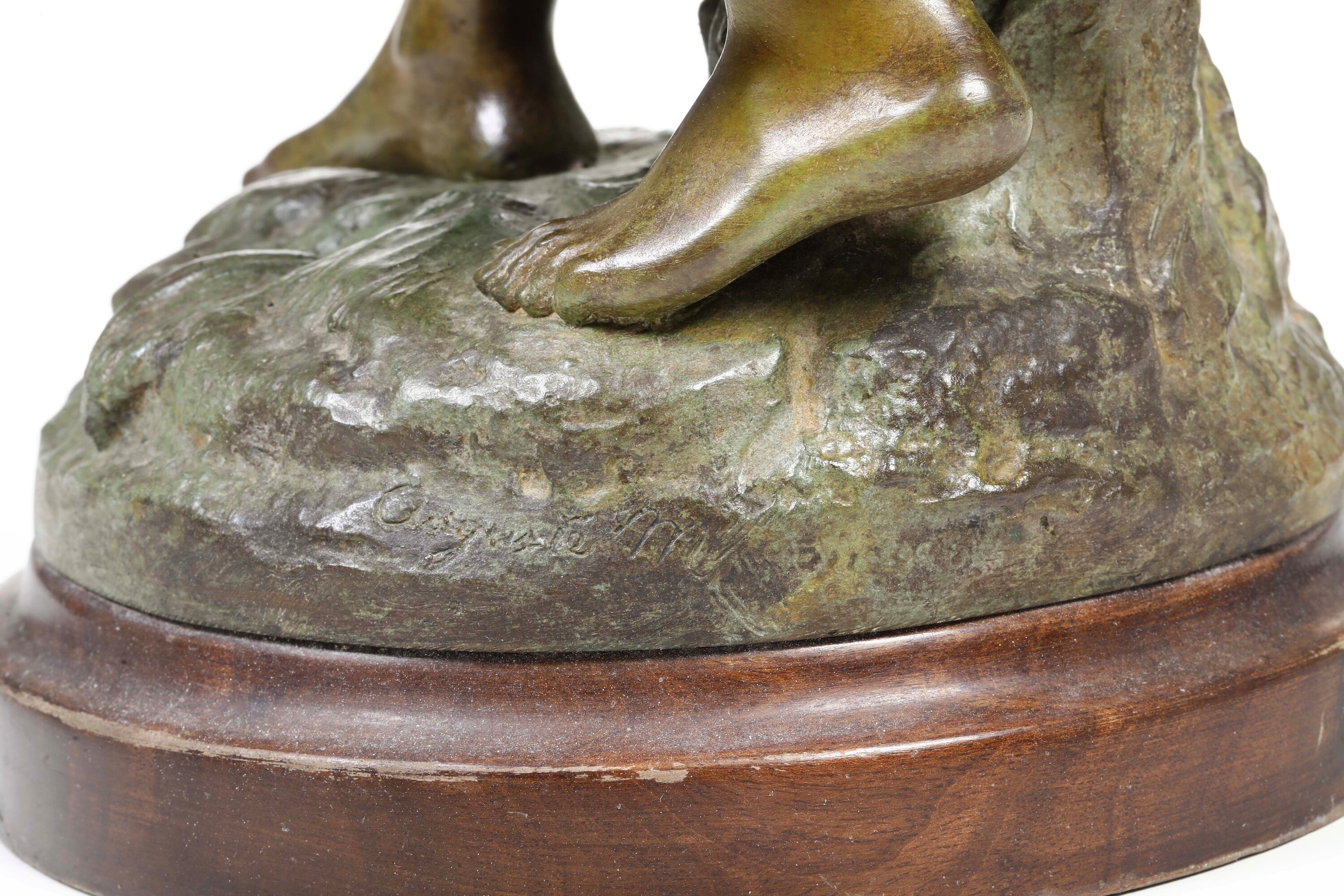 Bronzo fuso, base in legno