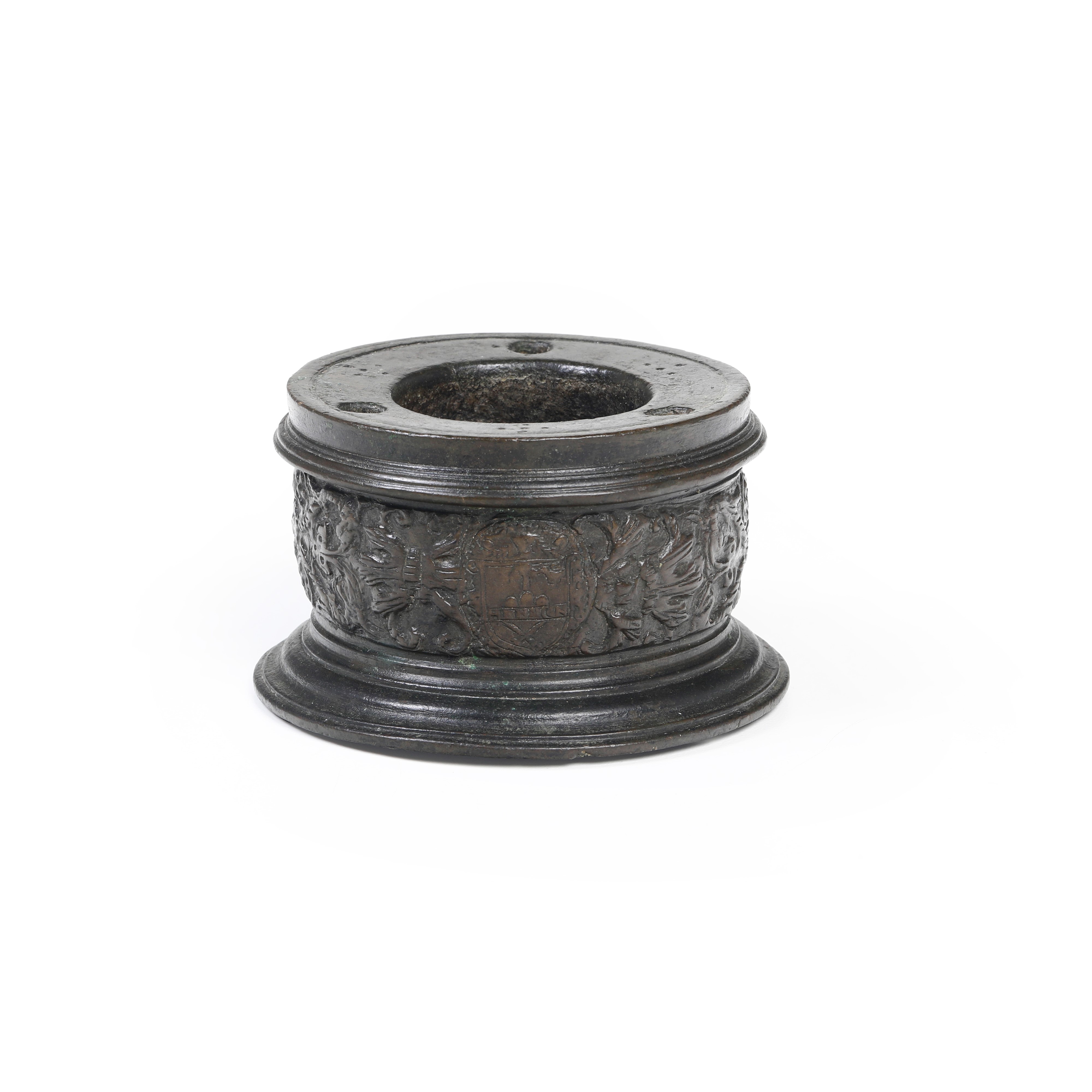 Corpo cilindrico con bordi modanati e fascia decorata a festone fitoforme centrato da stemma (difetti)