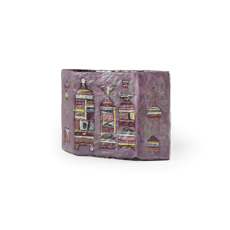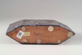a sezione esagonale in terracotta con decoro a smalti policromi.