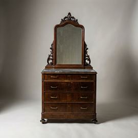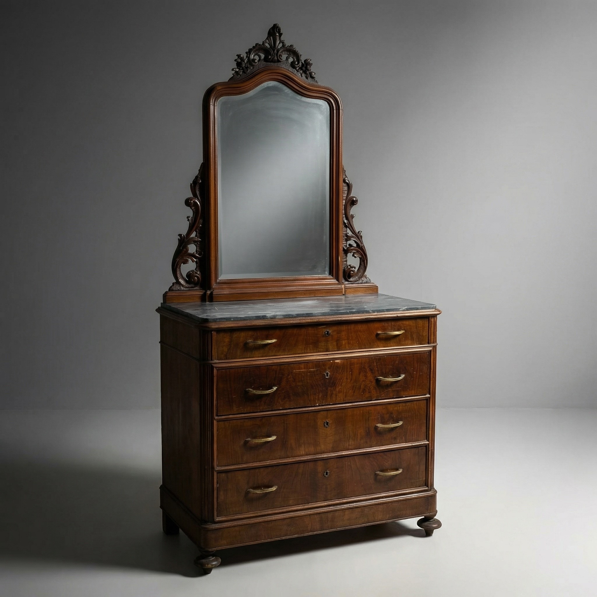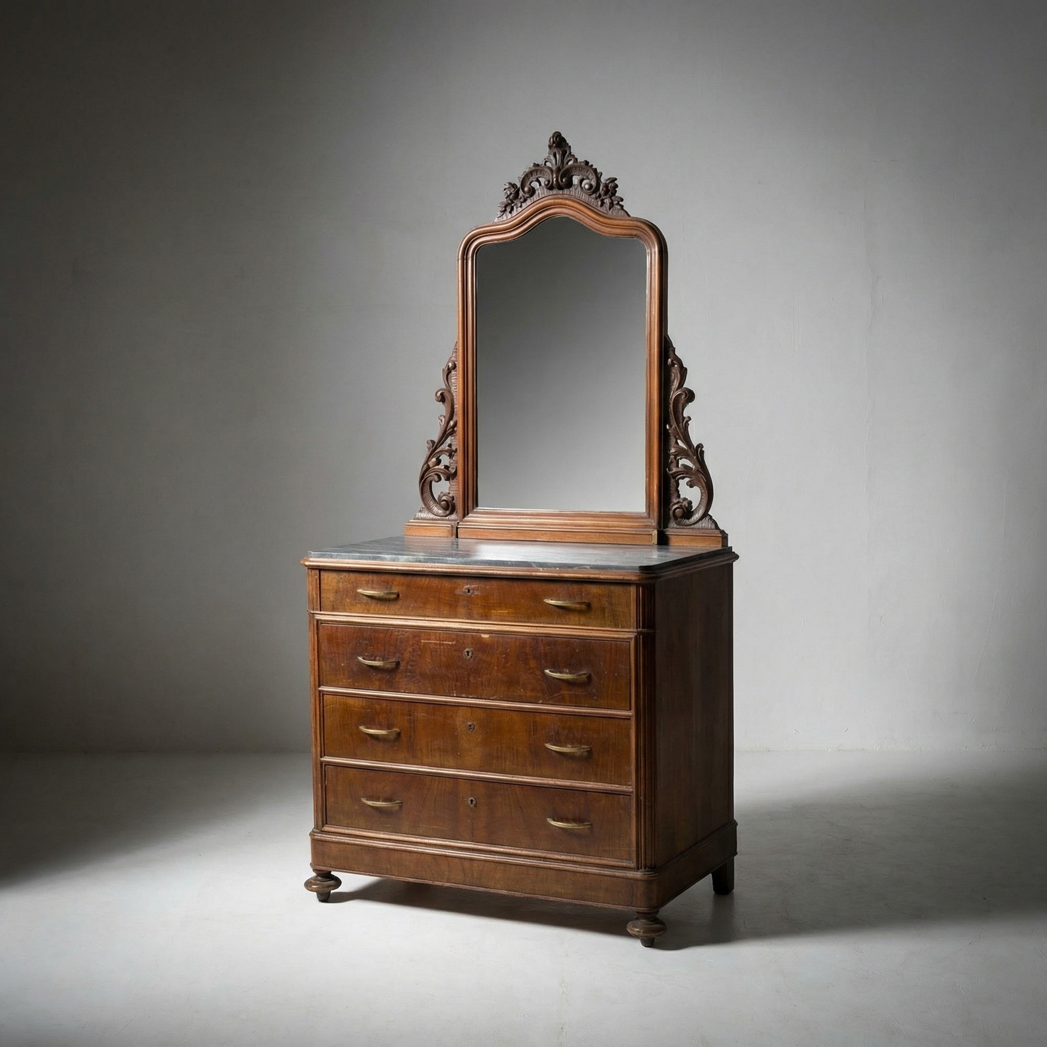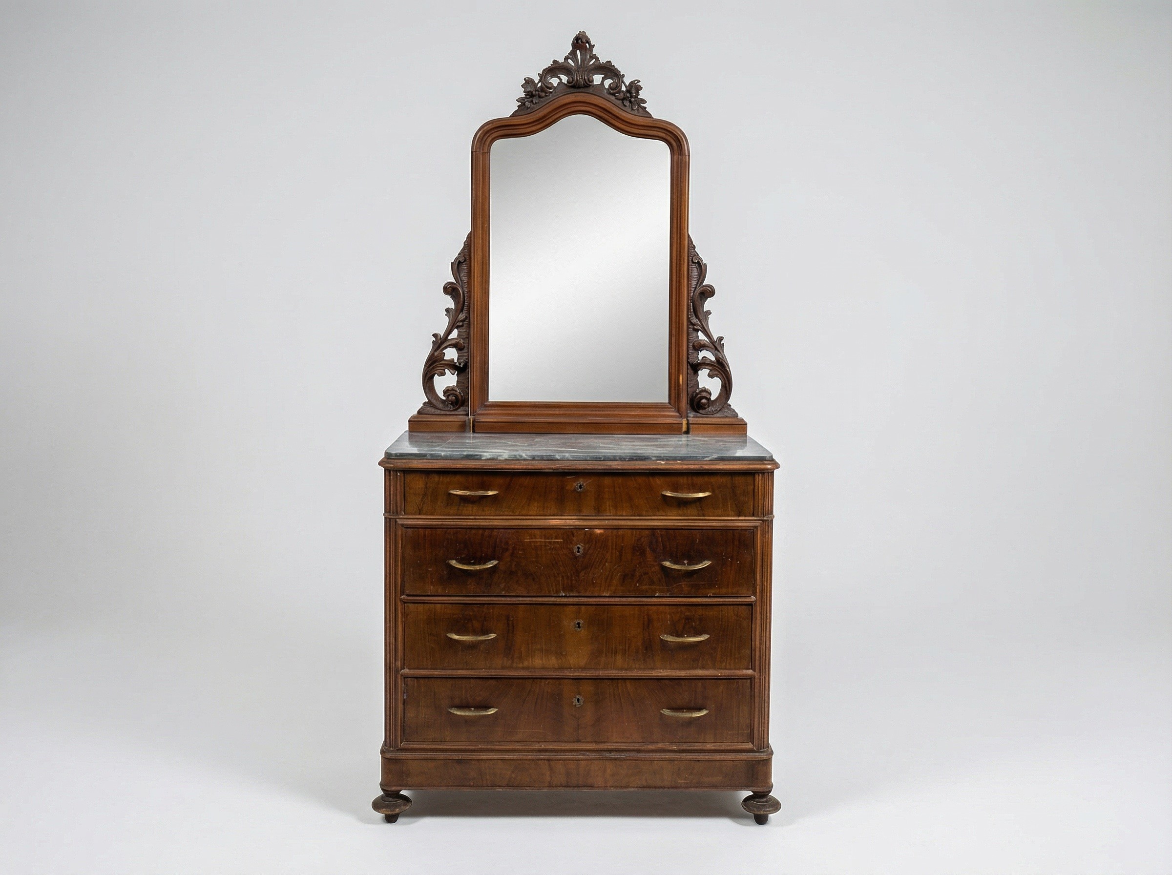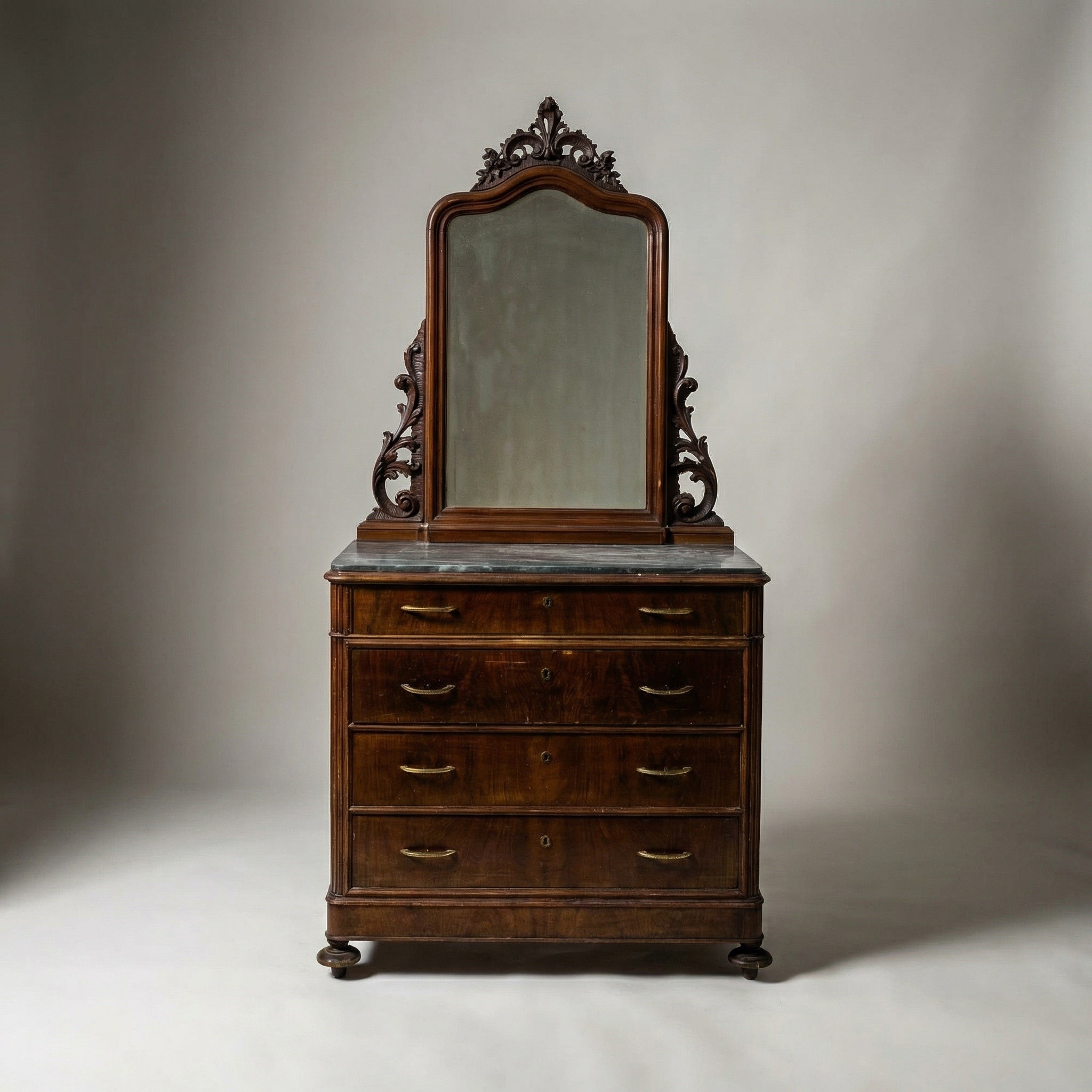 Comò a quattro cassetti con piano in marmo, inizio XX secolo