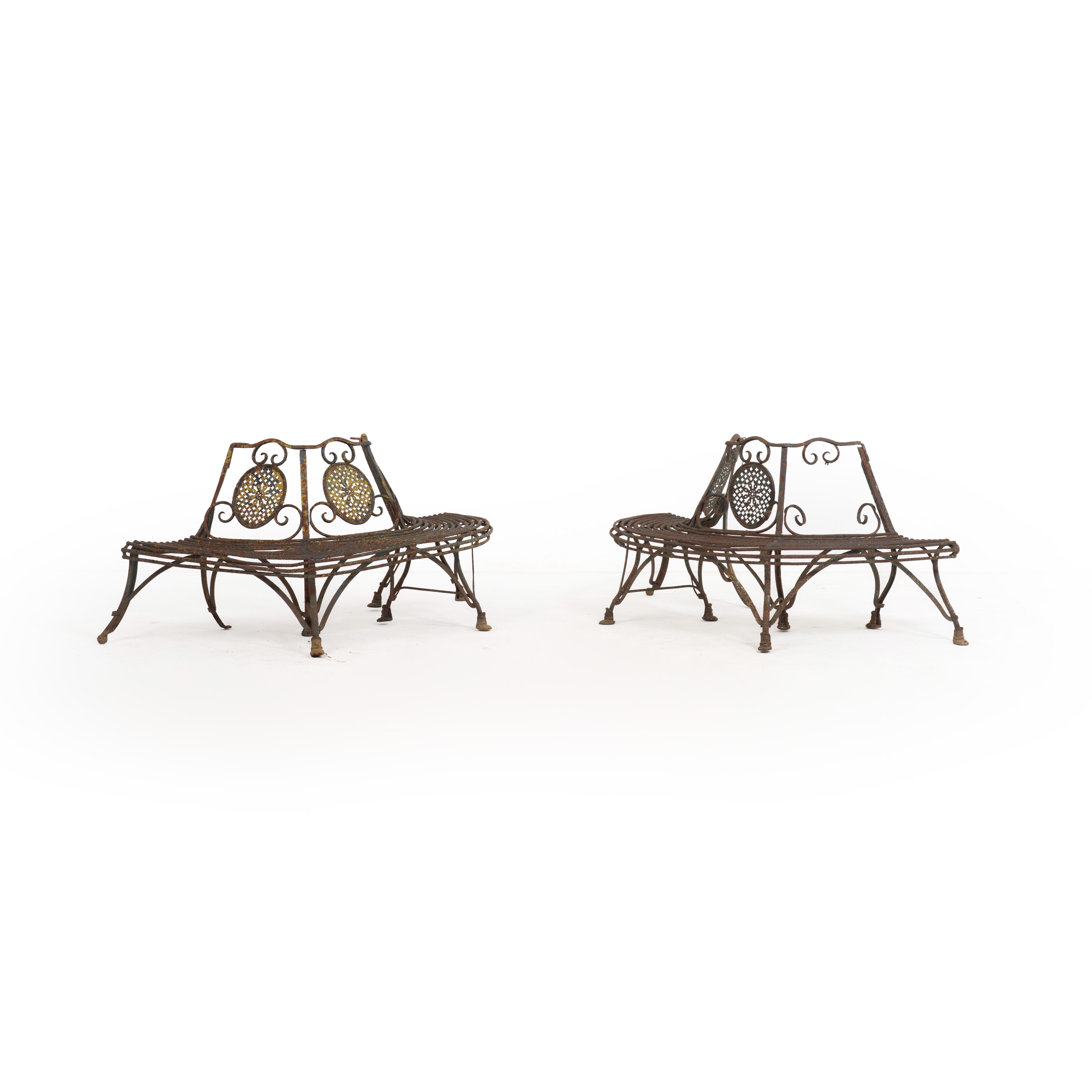 Coppia di panche da giardino a semiluna in metallo