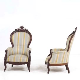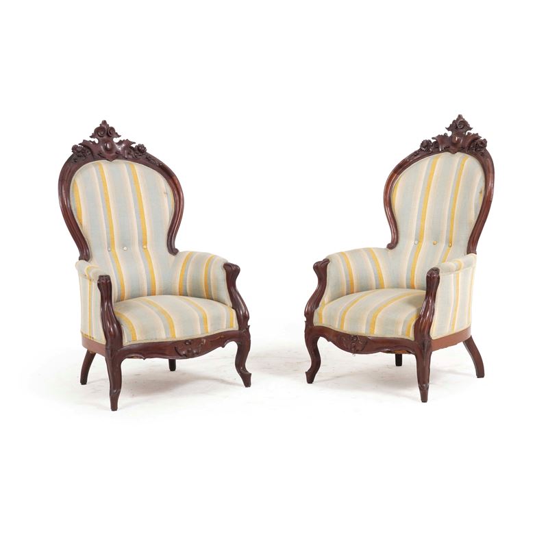 Imbottite, con cimasa centrale riccamente decorata a volute e motivi fitomorfi, piedi mossi