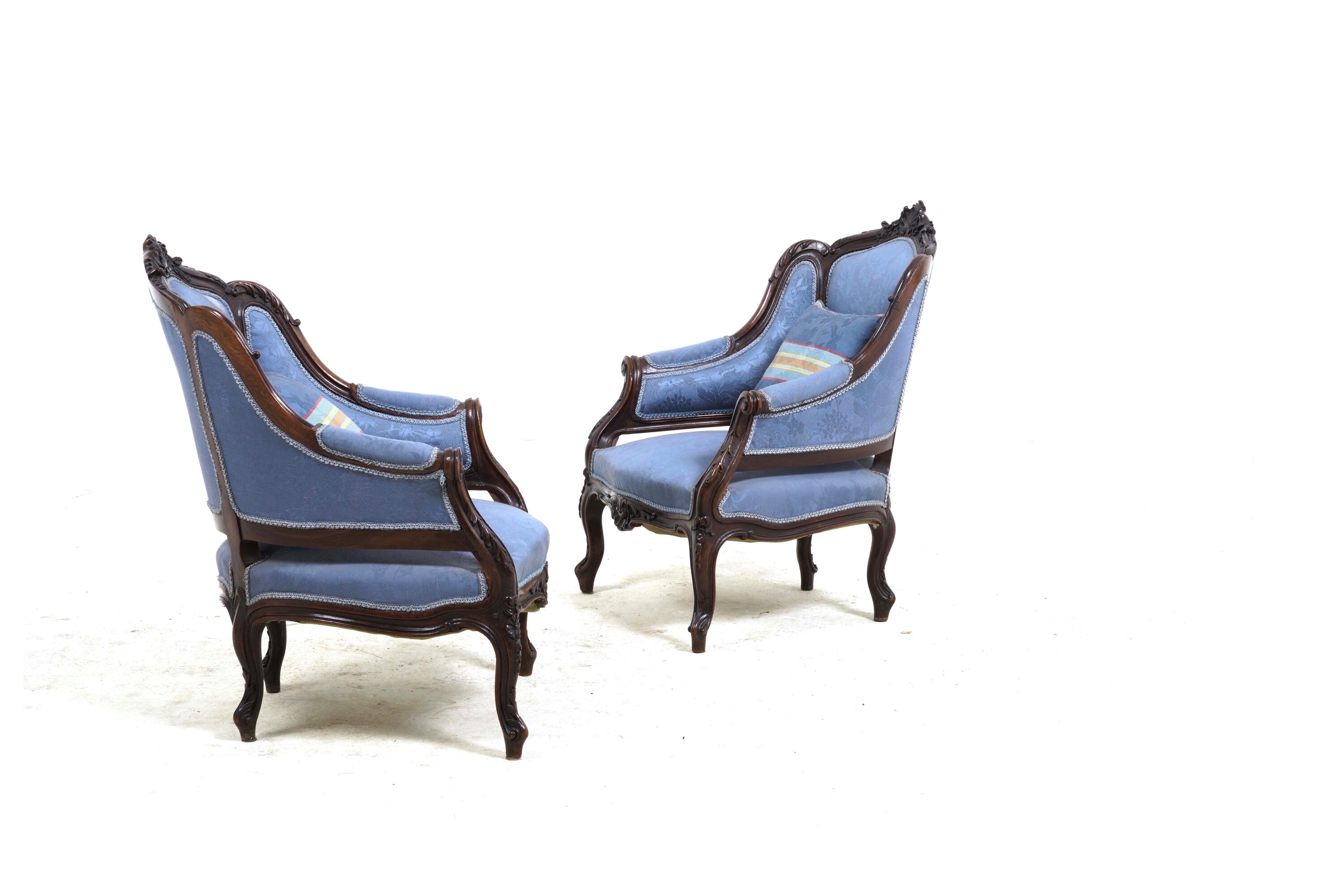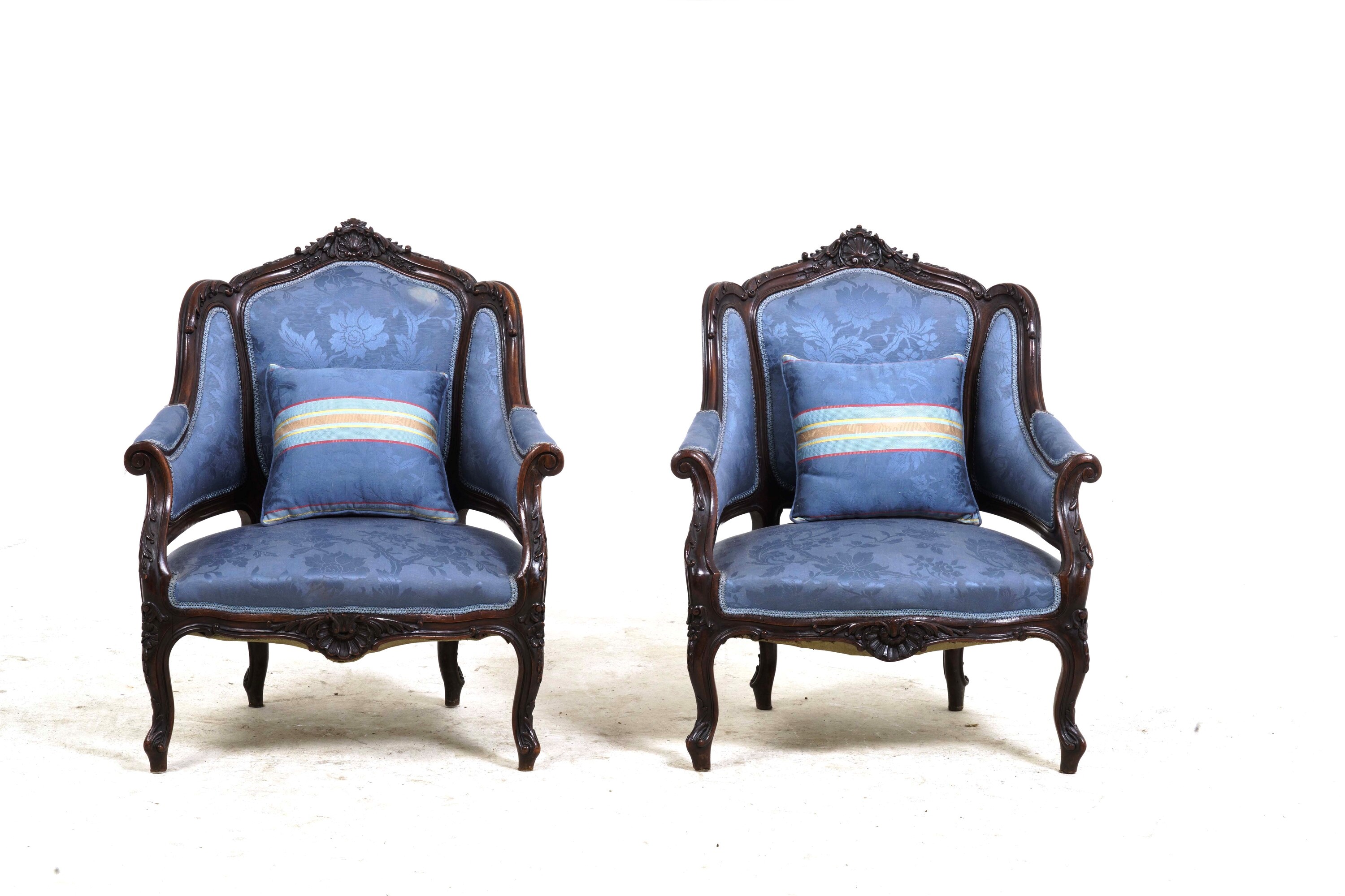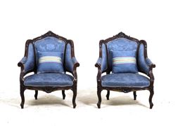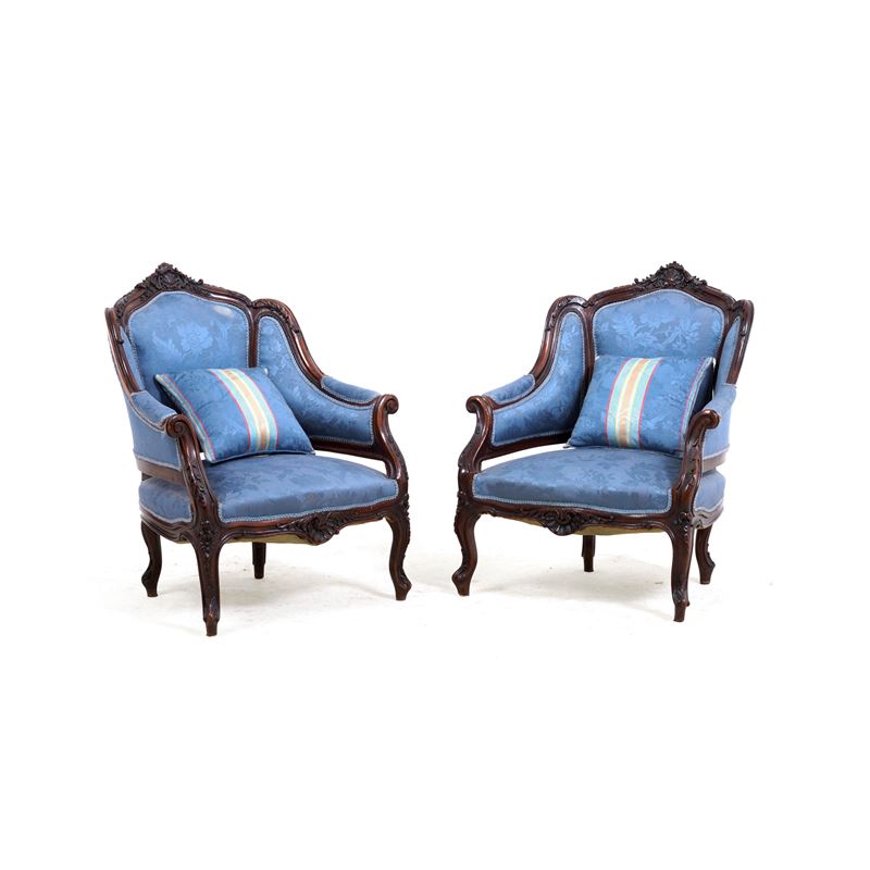 Coppia di poltrone in legno intagliato in stile settecentesco. XIX-XX secolo