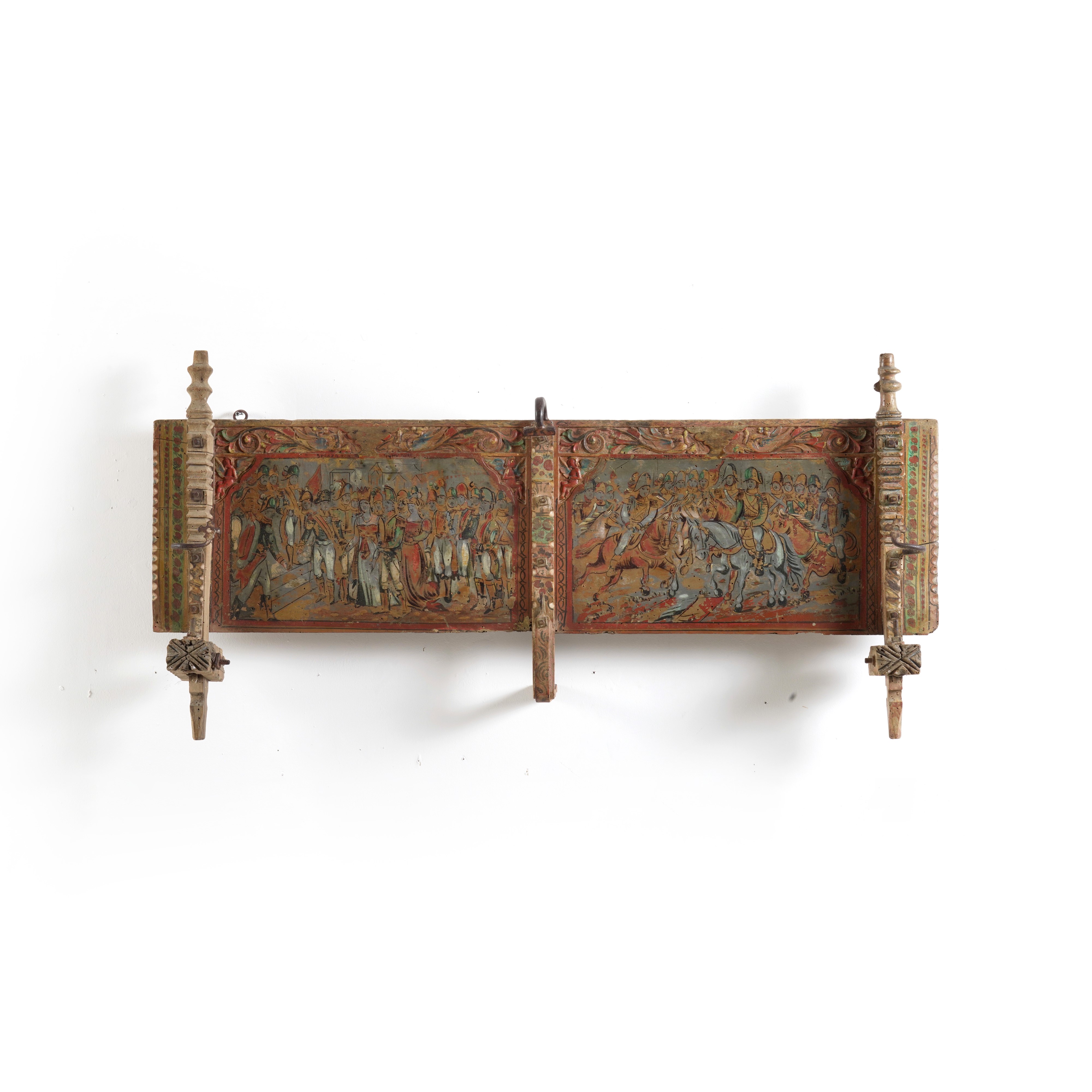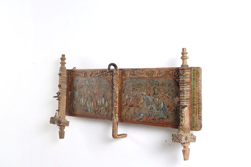 Elemento di carretto siciliano in legno dipinto