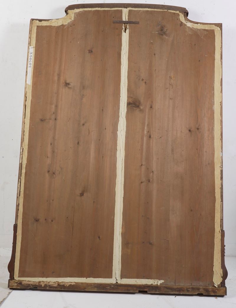 Grande specchiera in legno con terminale sagomato