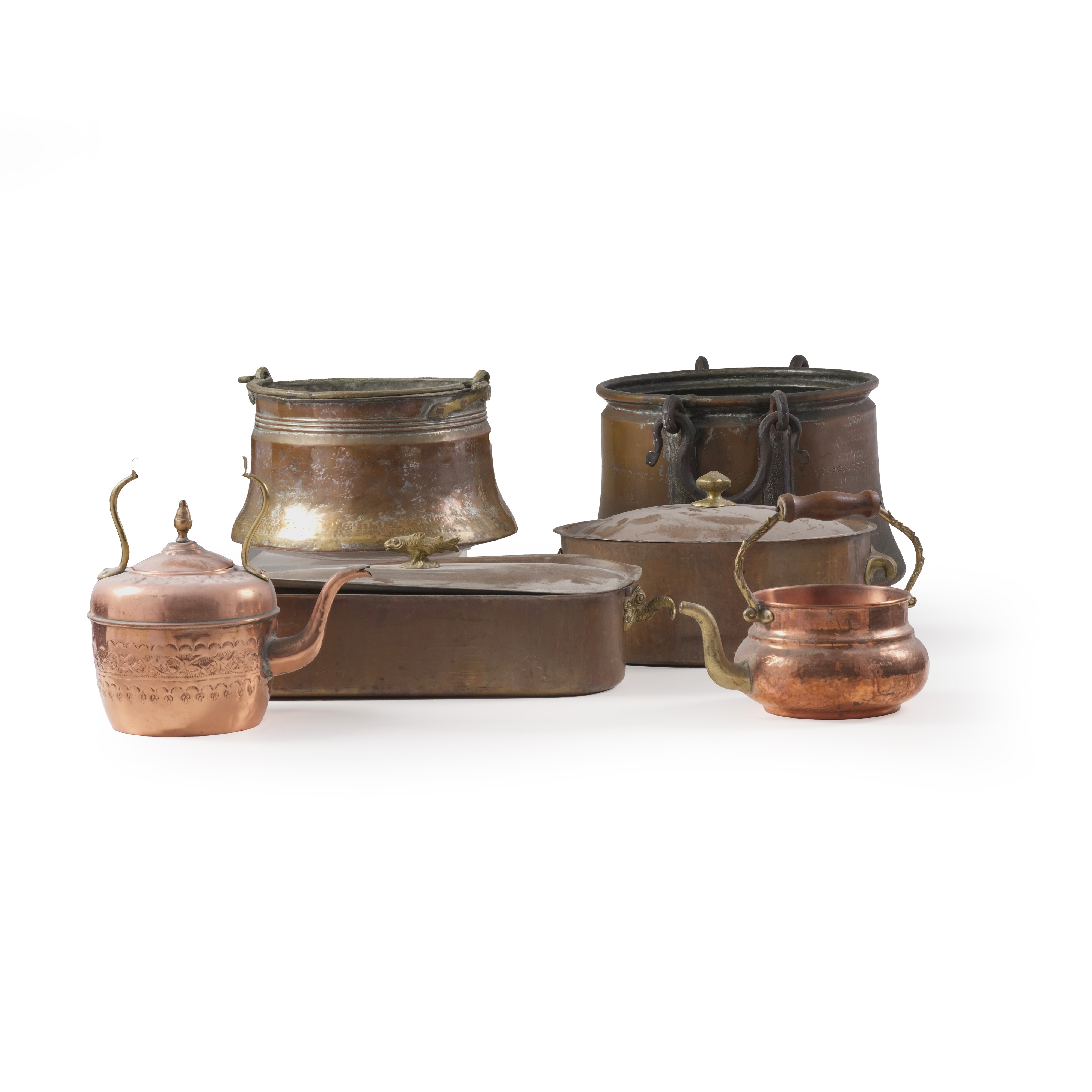 Lotto di sei oggetti in rame