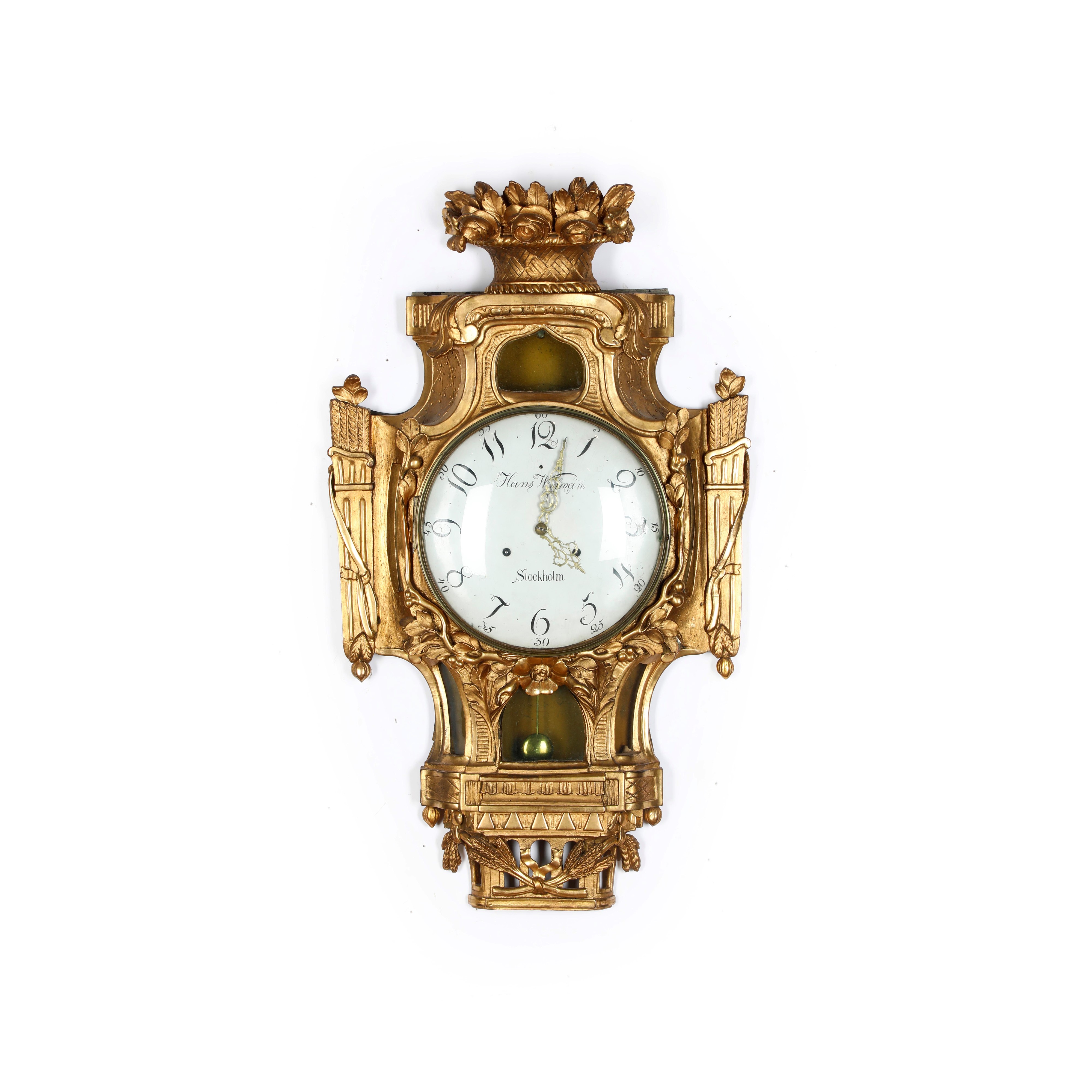 Orologio da parete in legno dorato. Hans Wessman (1736-1805), Stockholm