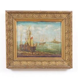 Pittore del XIX-XX secolo Veduta costiera con pescatori