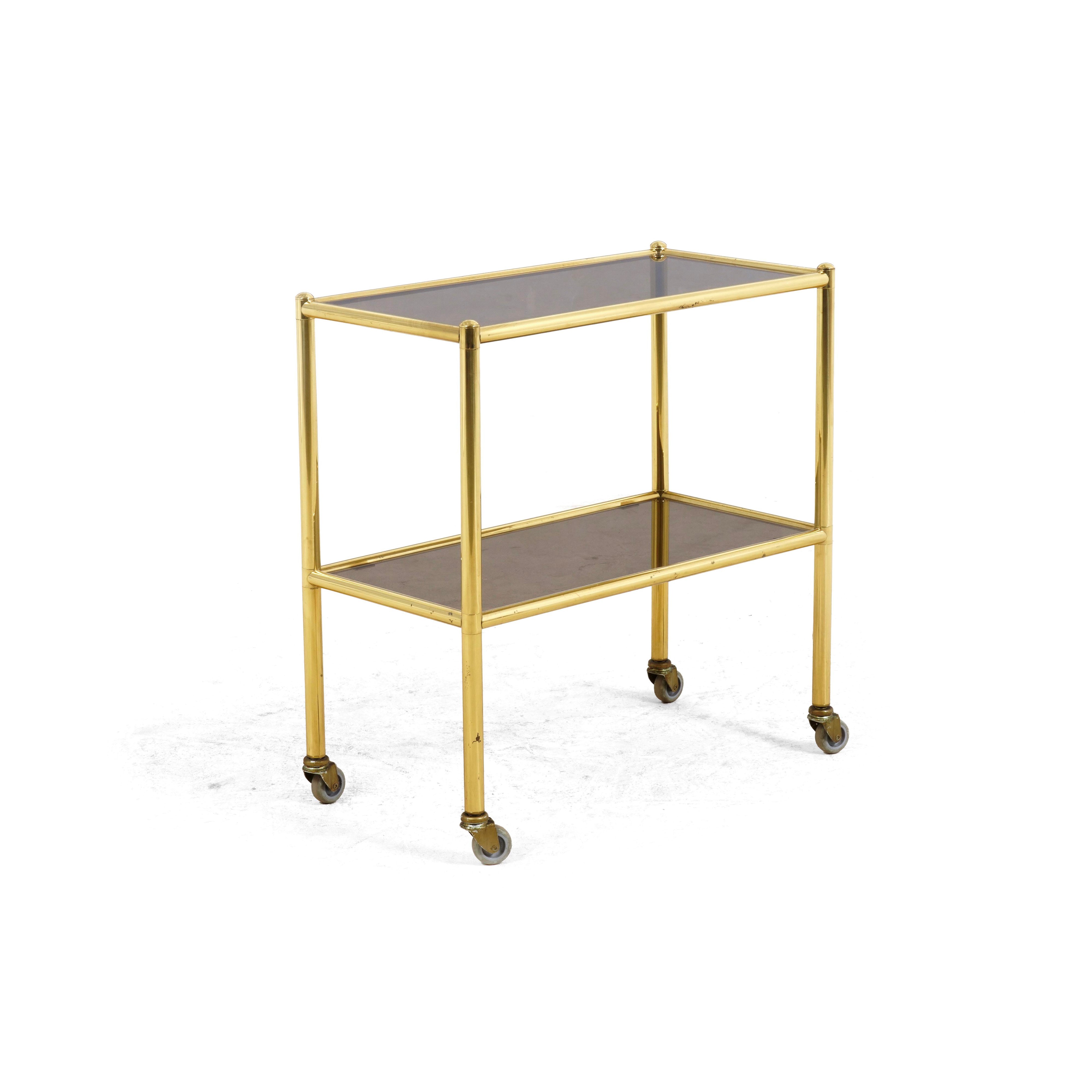 Tavolino rettangolare in ottone a due piani. XX secolo