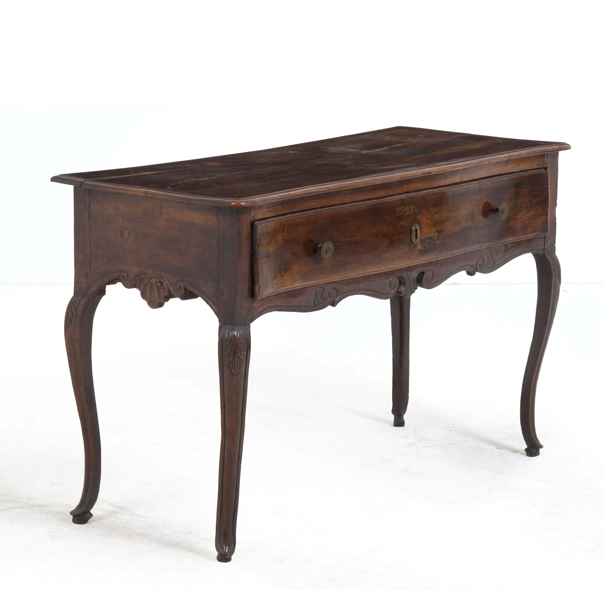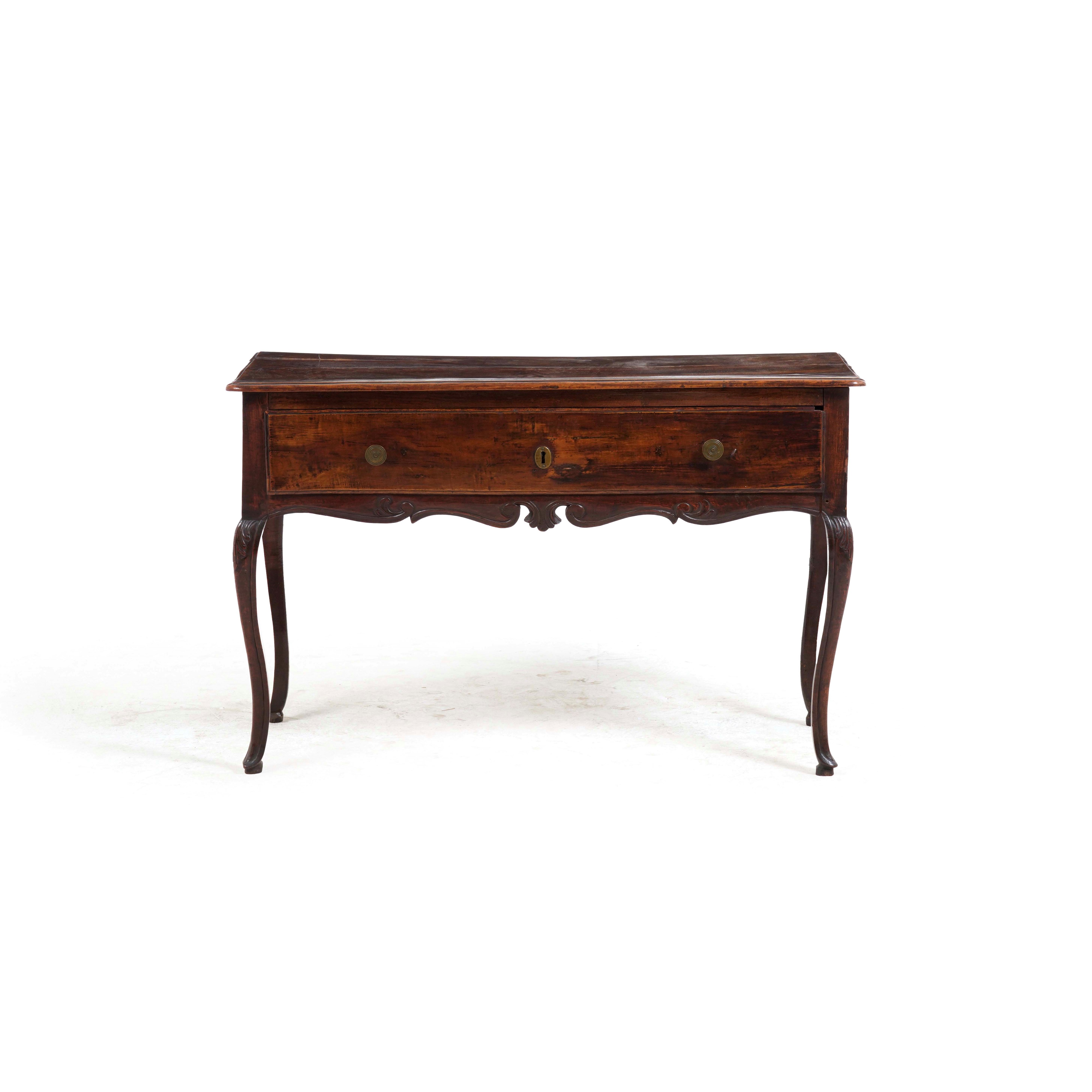 Un cassetto nella fascia, gambe mosse, piano e grambiale sagomati (restauri)