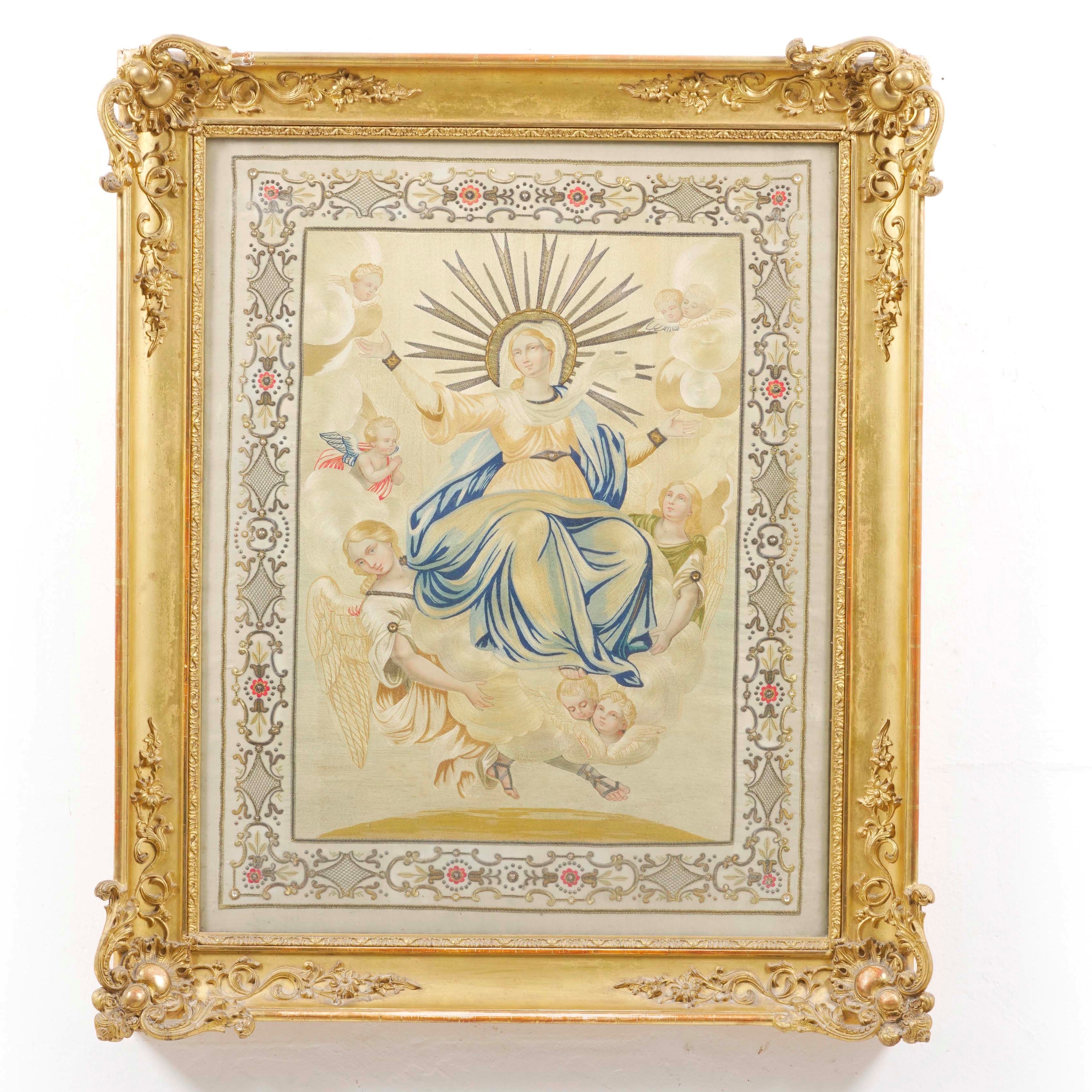 Tessuto religioso in cornice dorata