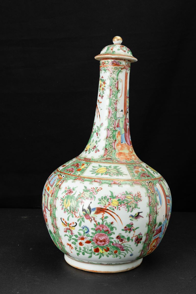 Vaso con coperchio in porcellana, Cina, Canton, XX secolo