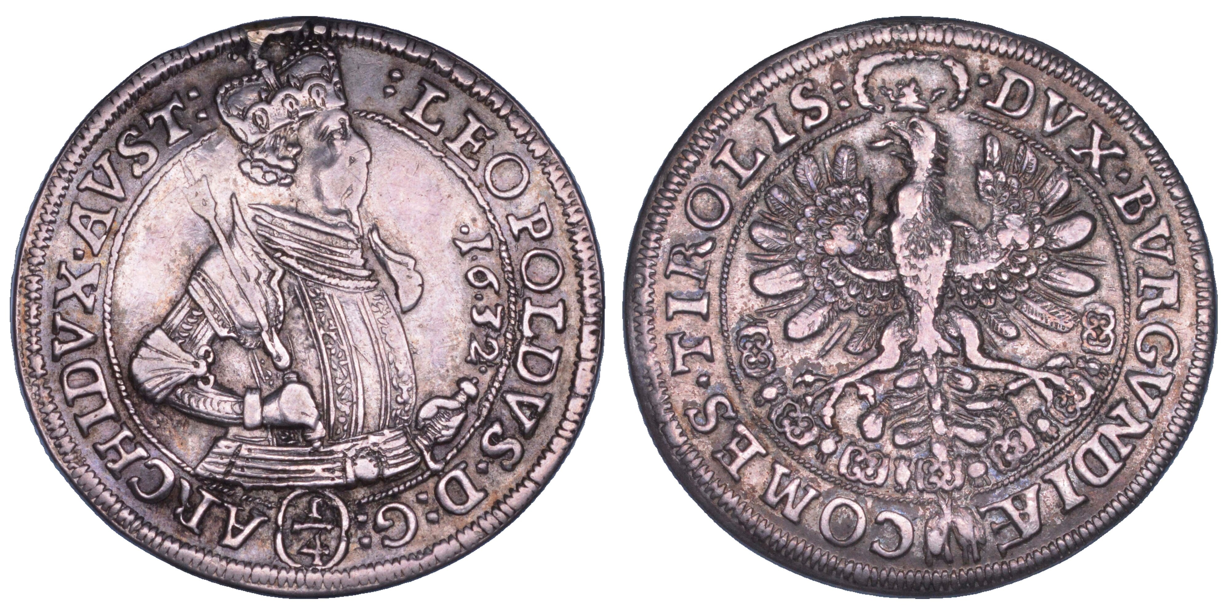 AUSTRIA. LEOPOLD V, 1619-1632. 1/4 Taler 1632. Hall.