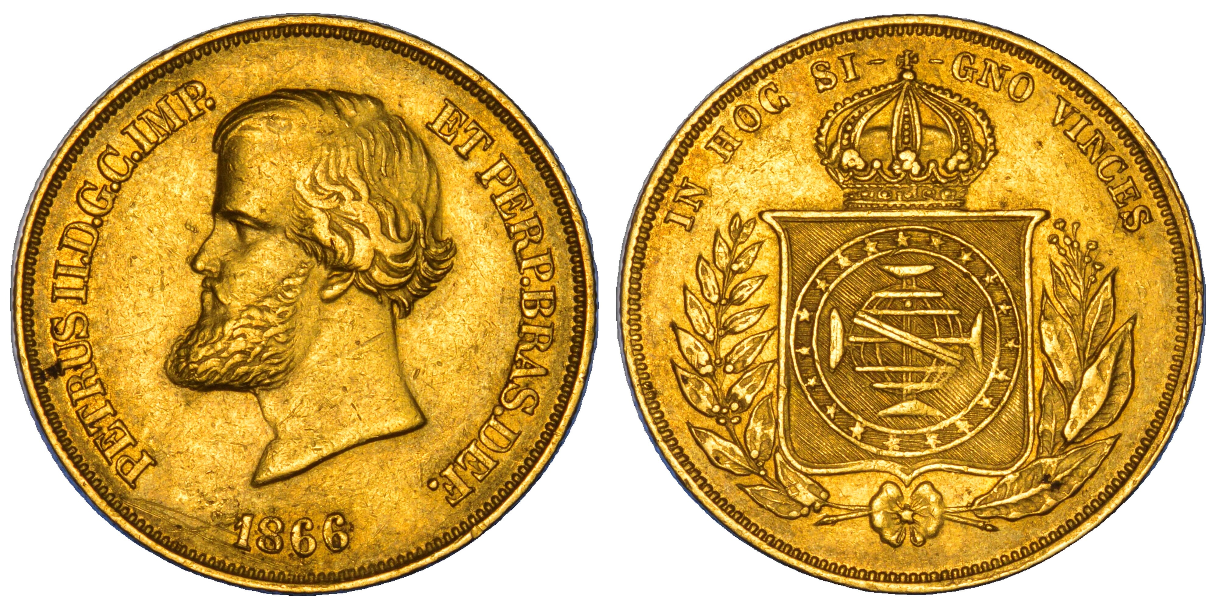 BRASILE. PEDRO II, 1831-1889. 10000 reis 1866.