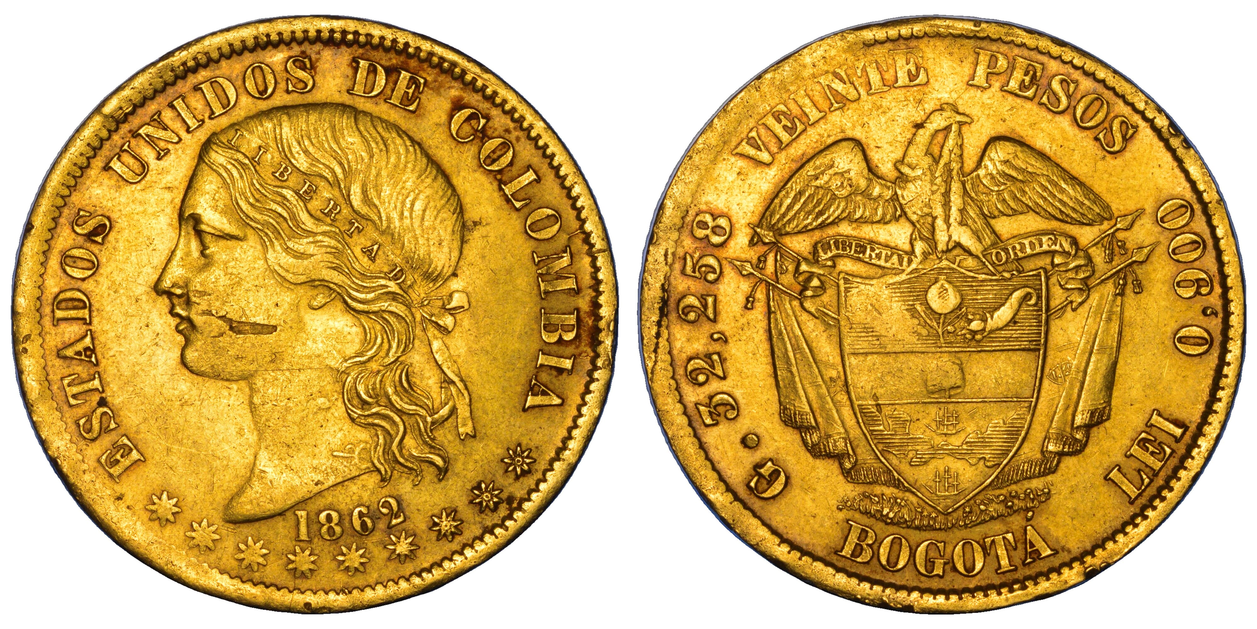 COLOMBIA. ESTADOS UNIDOS DE COLOMBIA, 1862-1886. 20 Pesos 1862. Bogotà.
