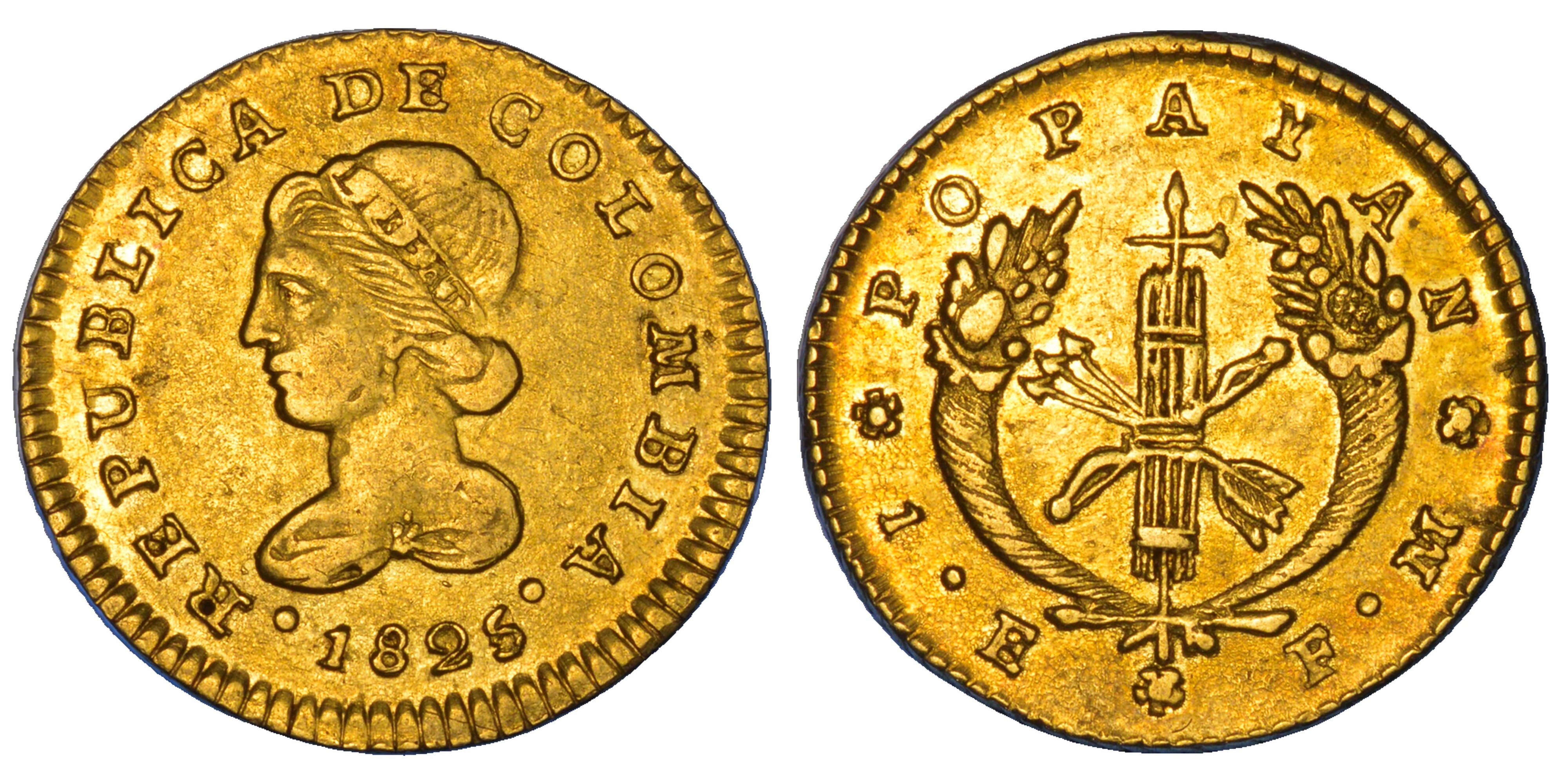 COLOMBIA. REPUBLICA. Escudo, 1825. Popayan.