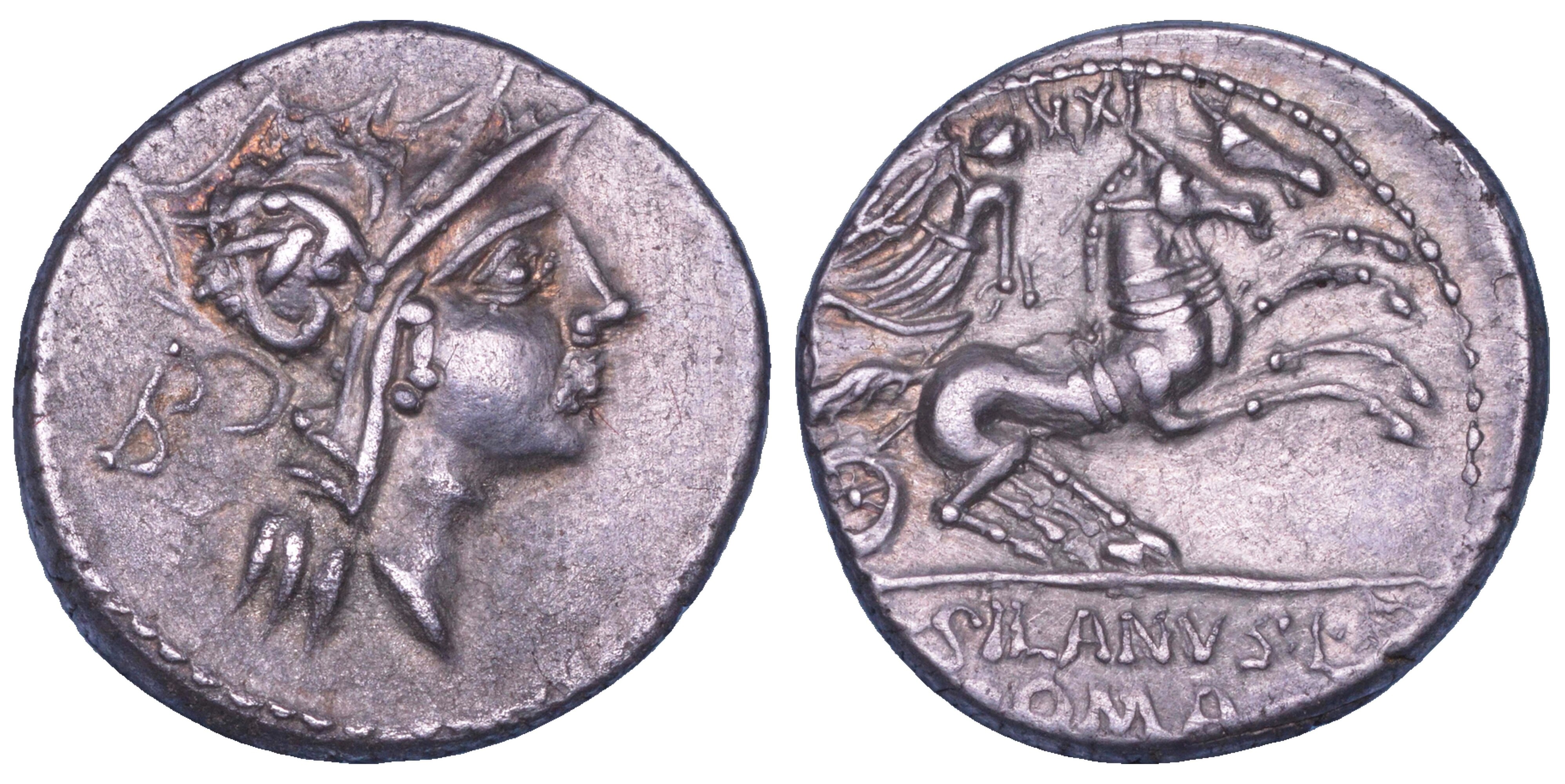 JUNIA. D. Junius Silanus, 91 a.C. Denario.