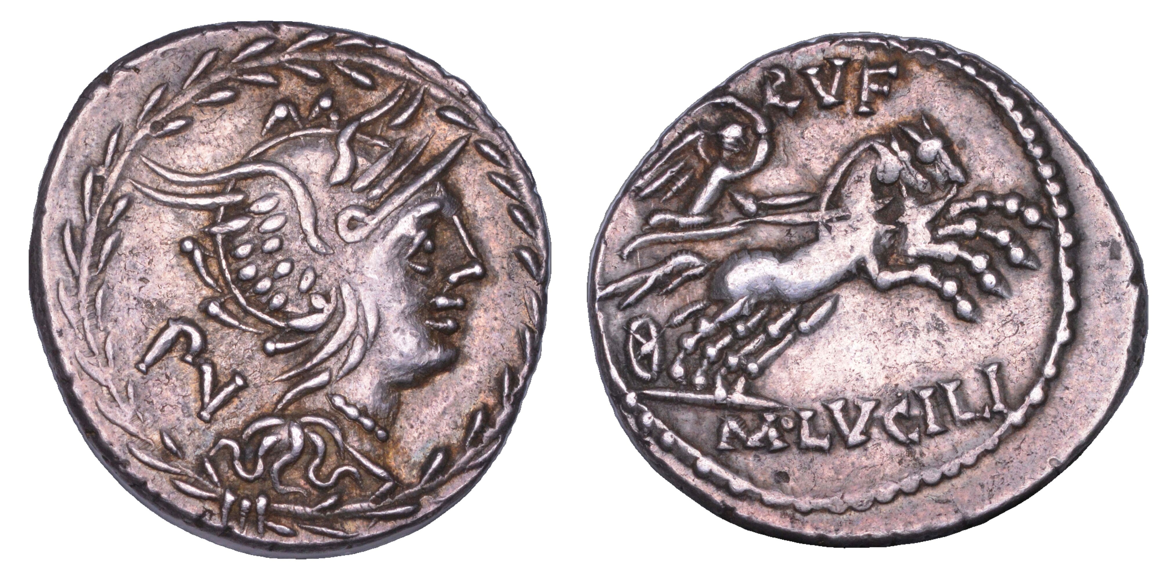 LUCILIA. M. Lucilius Rufus, 101 a.C. Denario.