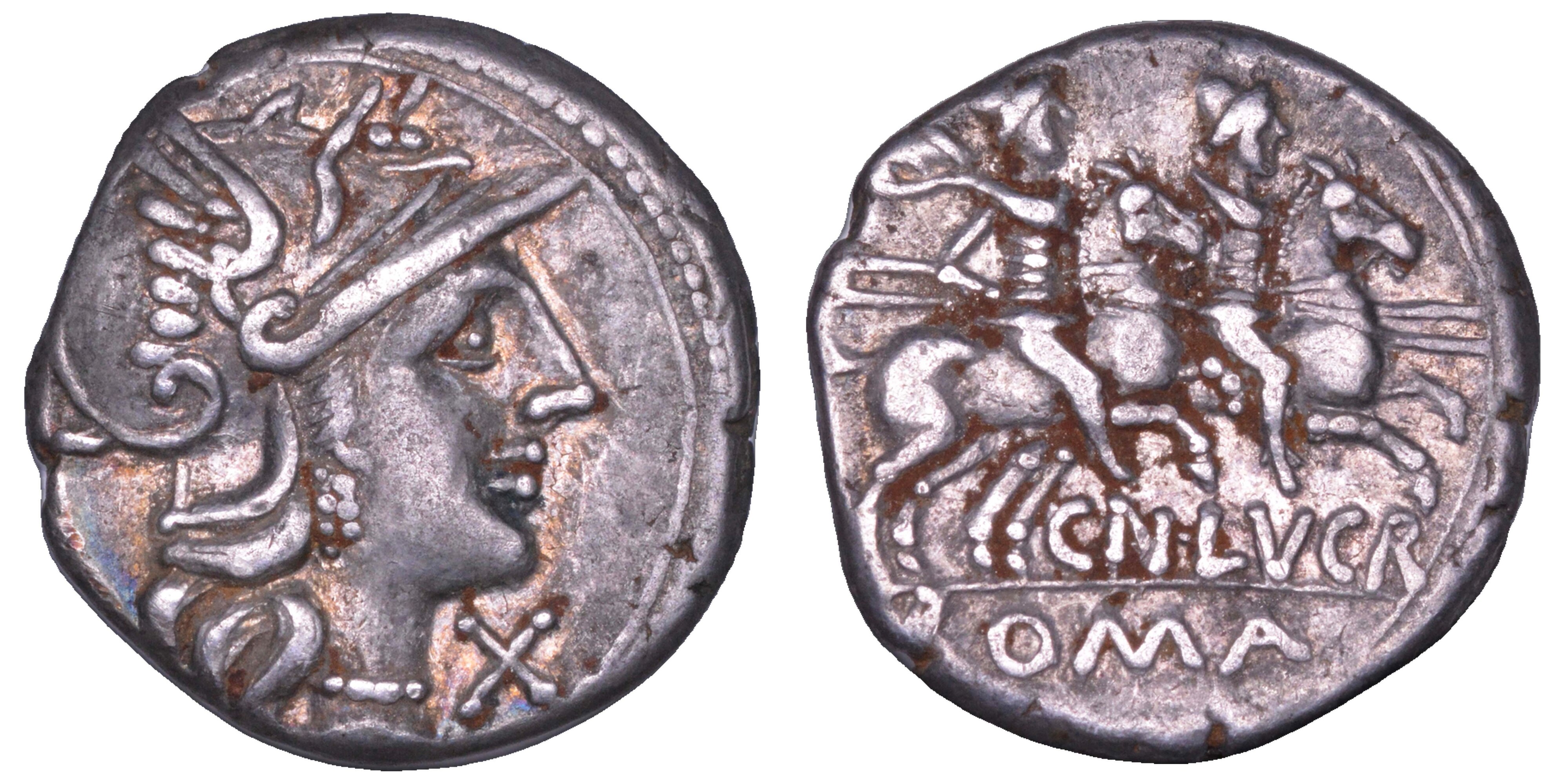 LUCRETIA. Cn. Lucretius Trio, 136 a.C. Denario.