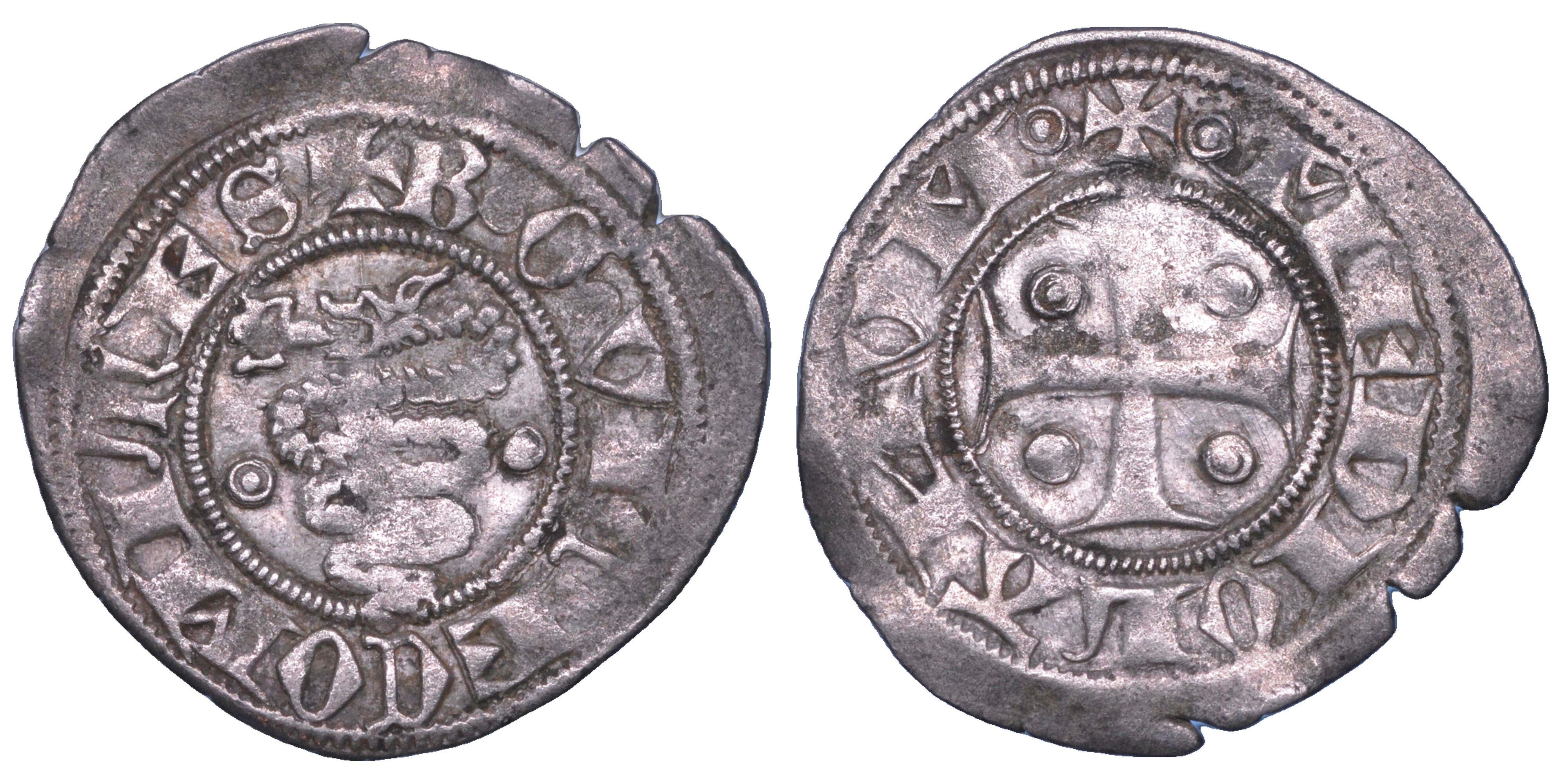 + B G VICECOMITES Nel campo, biscia; ai lati due borchie. R/ + MEDIOLANVM Croce accantonata da quattro borchie. Crippa 6. MIR 105/g. Rara. g. 0,98. Diam. mm. 20,83. Arg. BB Esemplare di eccezionale larghezza.