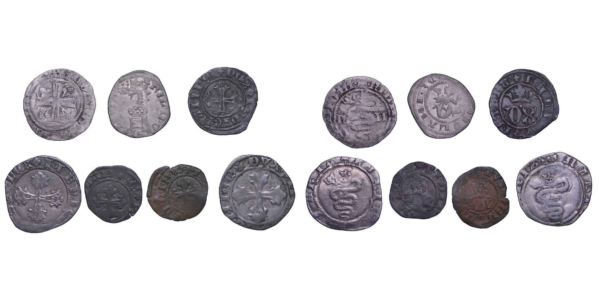 FILIPPO MARIA VISCONTI, 1412-1447. Sesino. Crippa 10. Mist. (2 es.) q.BB e MB - FILIPPO MARIA VISCONTI, 1412-1447. Sesino. Crippa 13. Molto raro. Mist. B/MB - FILIPPO MARIA VISCONTI, 1412-1447. Trillina. Crippa 14. Mist. q.SPL - FILIPPO MARIA VISCONTI, 1412-1447. Sesino. Crippa 15. Mist. MB/BB - FILIPPO MARIA VISCONTI, 1412-1447. Sesino. Crippa 16. Mist. (2 es.) q.BB - B/MB