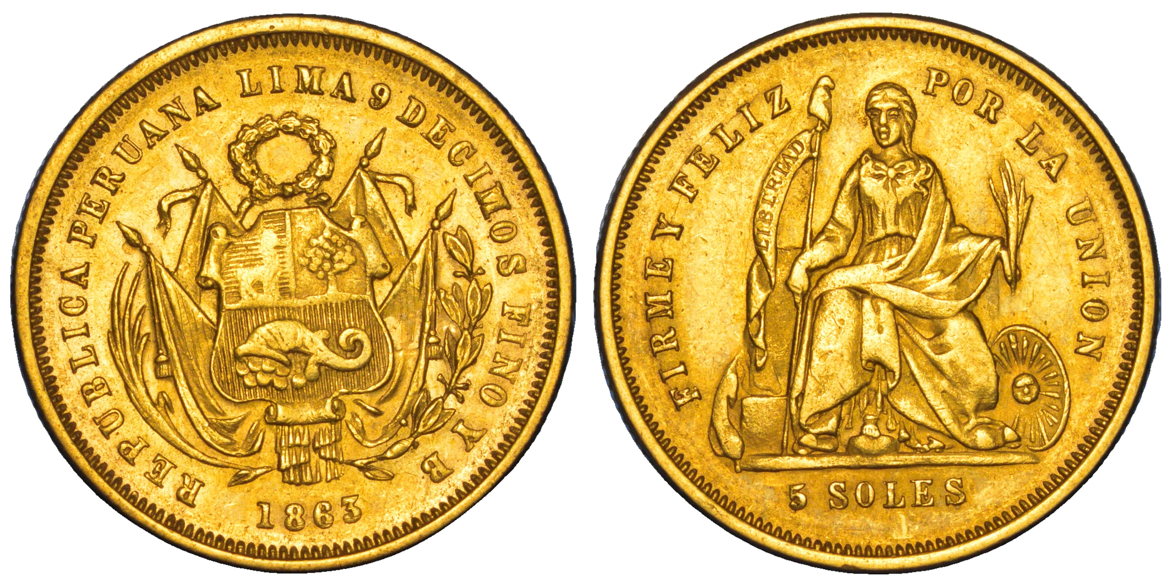PERÙ. REPUBLICA, dal 1821. 5 Soles 1863.