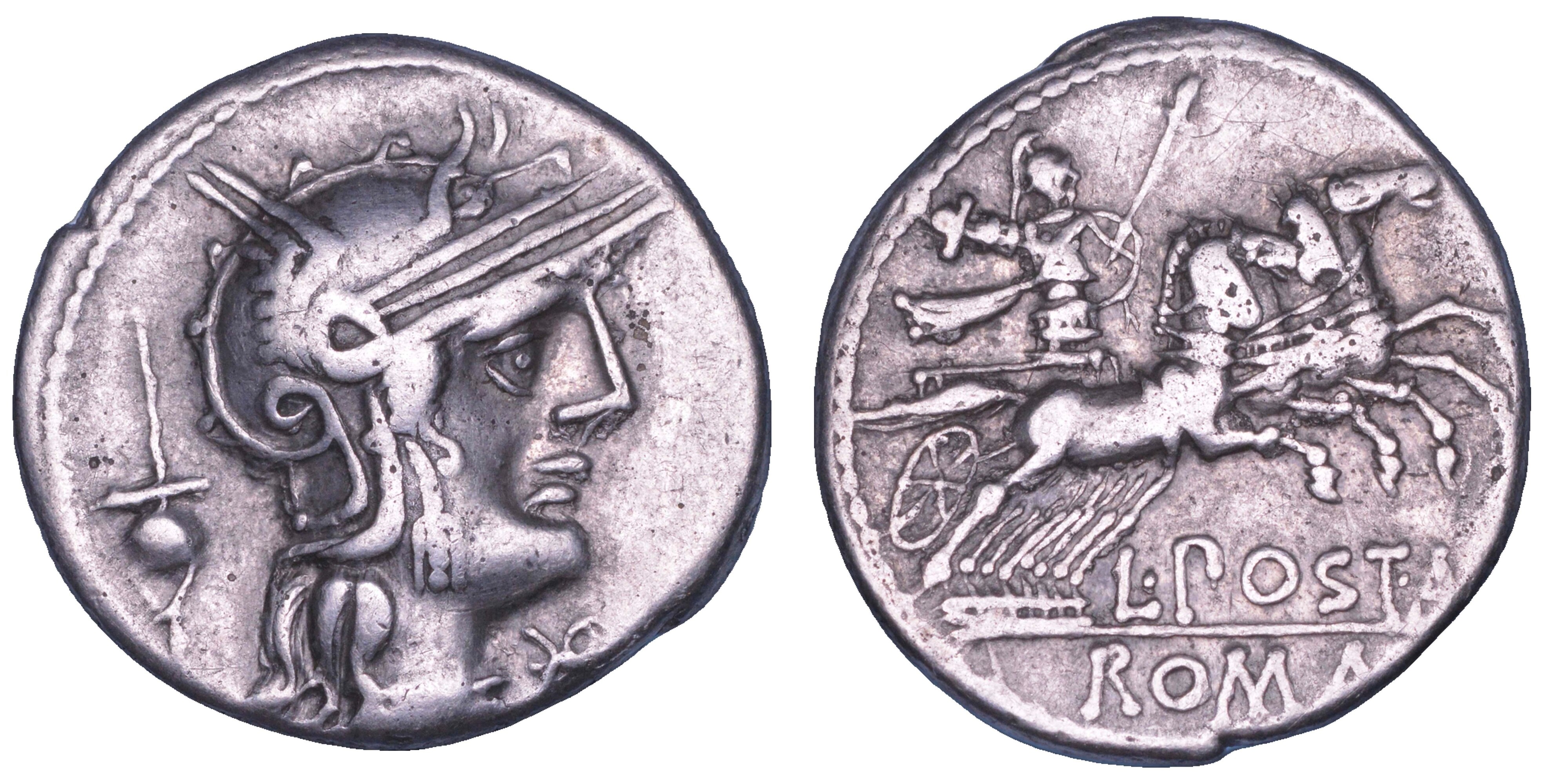 POSTUMIA. L. Postumius Albinus, 131 a.C. Denario.