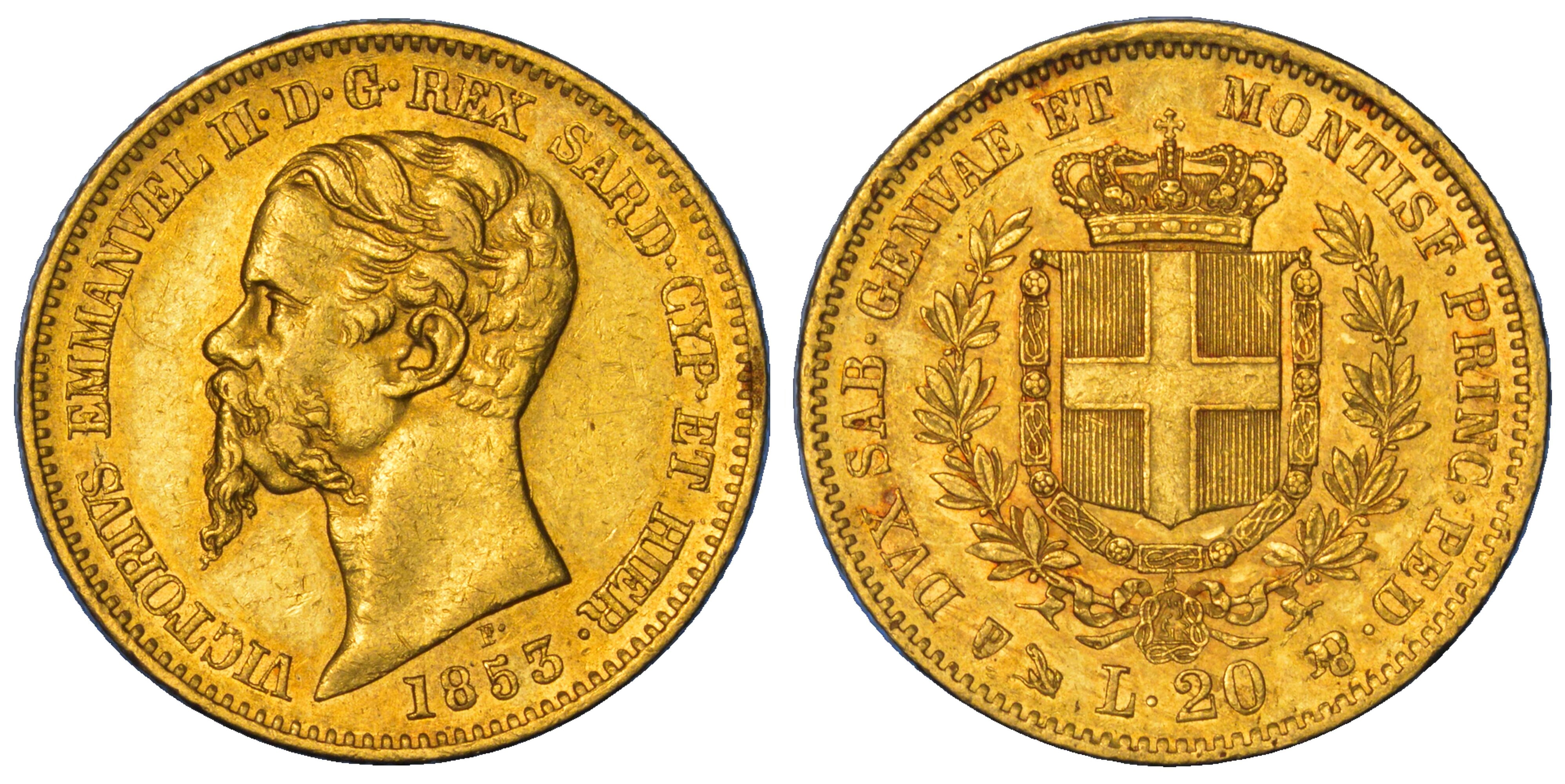 REGNO DI SARDEGNA. VITTORIO EMANUELE II DI SAVOIA, 1849-1861. 20 Lire 1853. Genova.