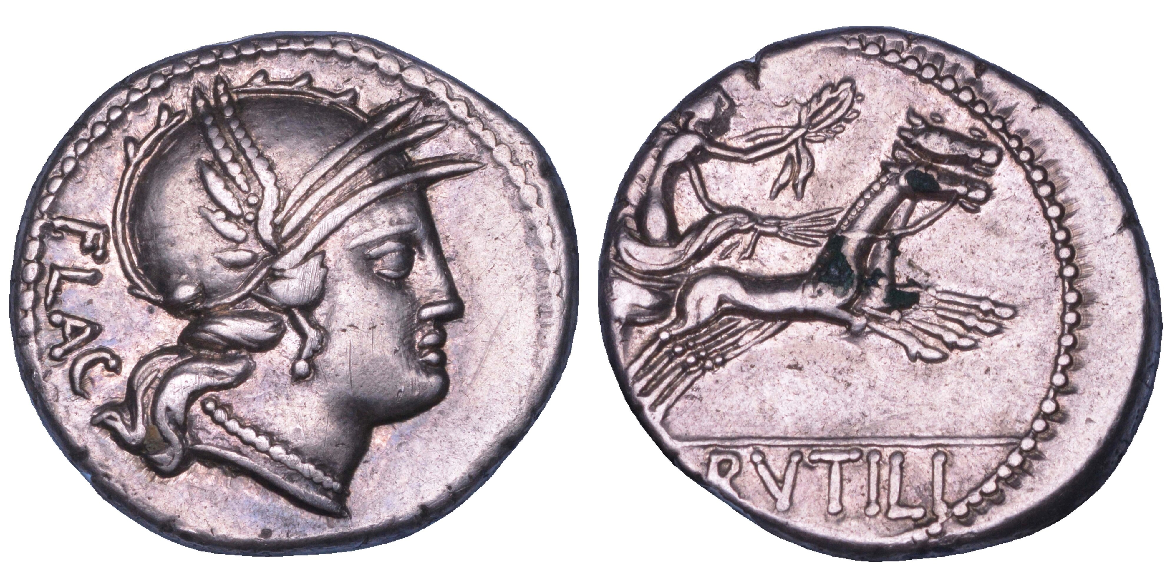 RUTILIA. L. Rutilius Flaccus. 77 a.C. Denario.