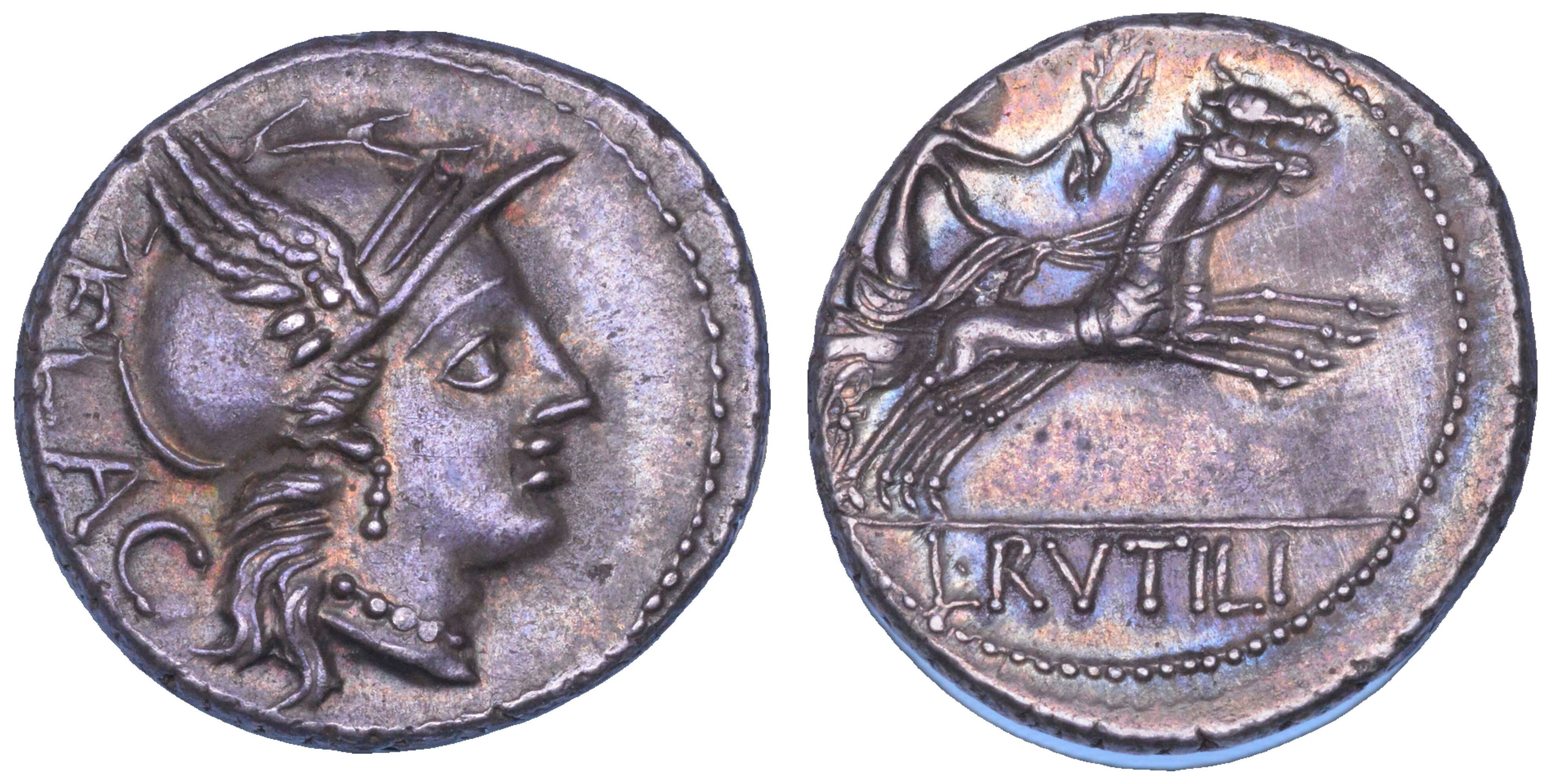 RUTILIA. L. Rutilius Flaccus, 77 a.C. Denario.