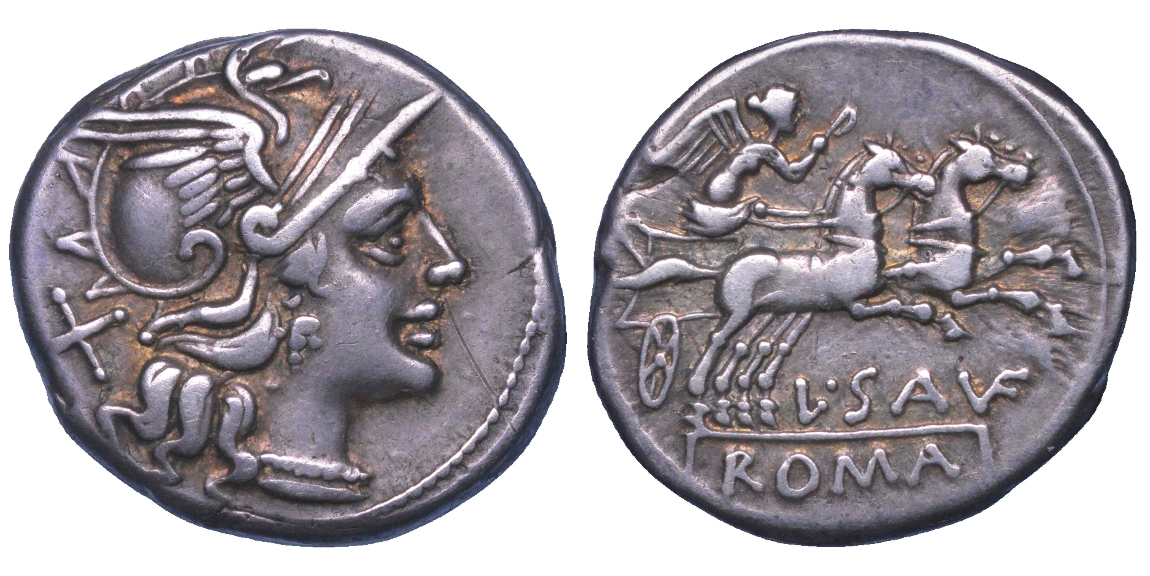 SAUFEIA. L. Saufeius, 152 a.C. Denario.