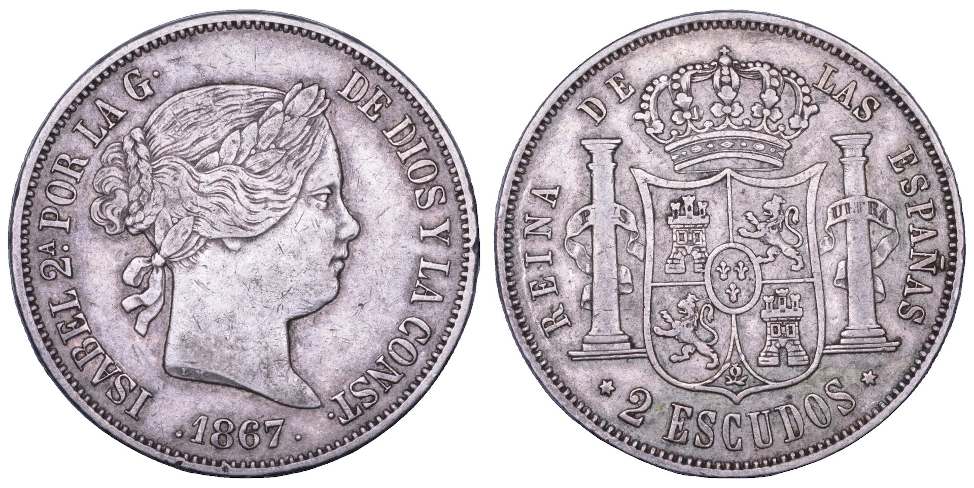SPAGNA. ISABEL II, 1833-1868. 2 Escudos 1867.
