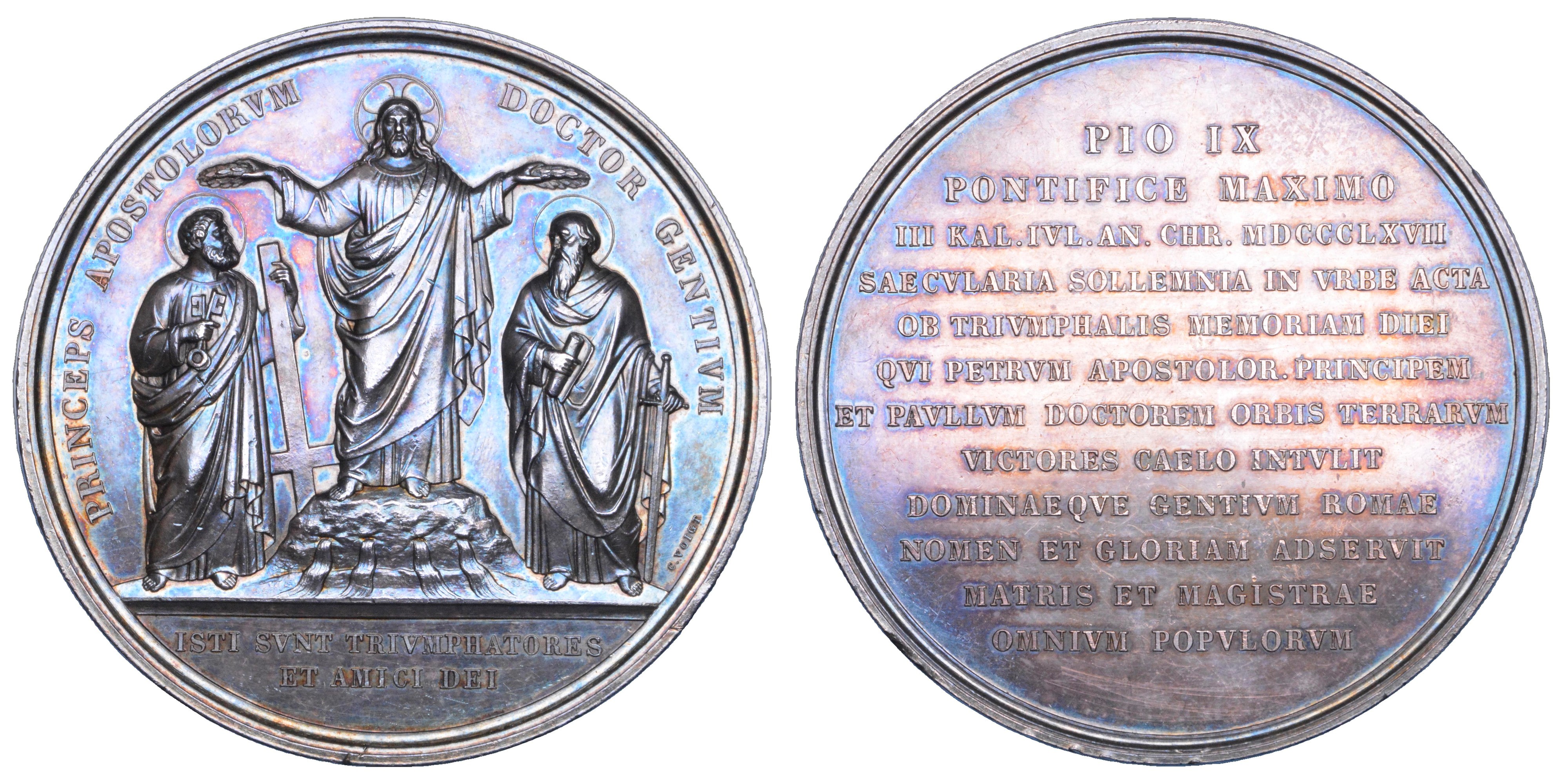STATO PONTIFICIO. PIO IX (Giovanni Maria Mastai Ferretti), 1846-1878. Medaglia in argento 1867.