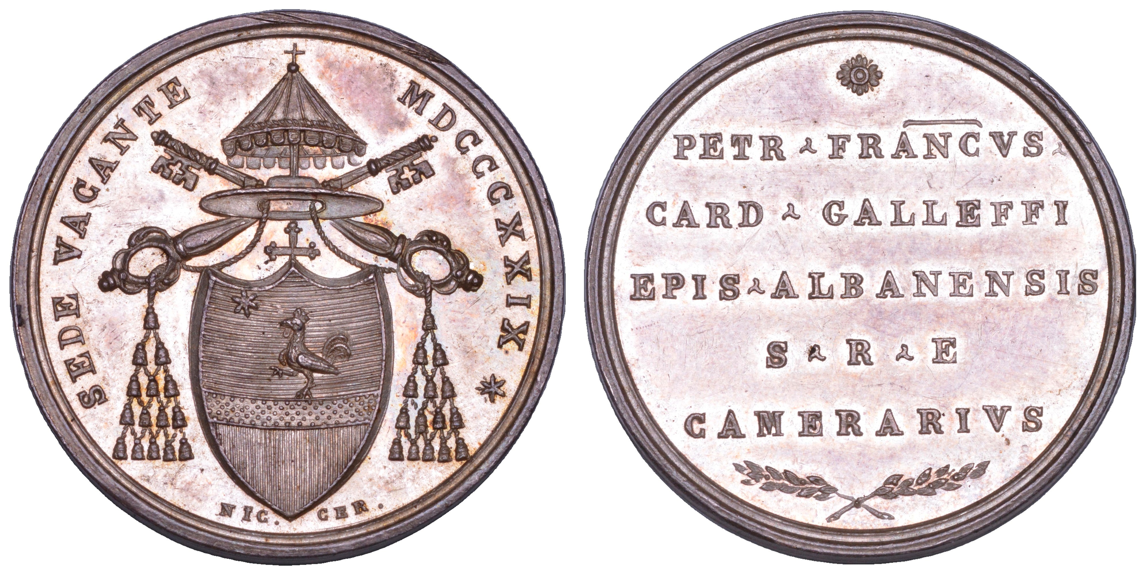 STATO PONTIFICIO. SEDE VACANTE 1829. Medaglia in argento emessa dal Cardinale Camerlengo Pier Francesco Galleffi.