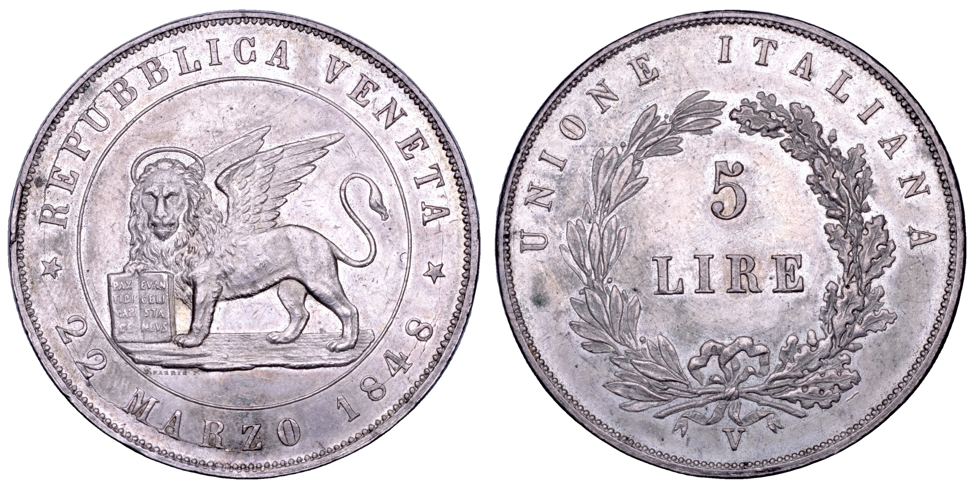VENEZIA. GOVERNO PROVVISORIO DI VENEZIA, 1848-1849. 5 Lire 1848 (I tipo).