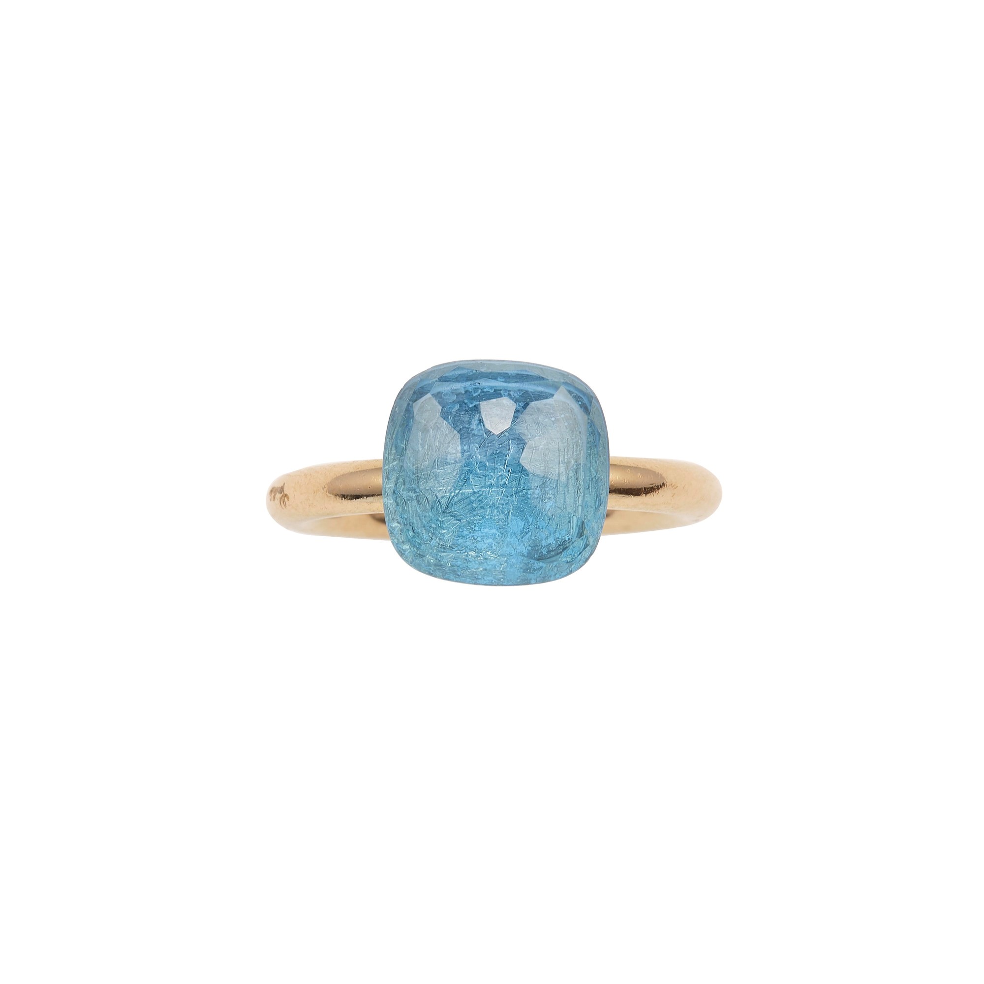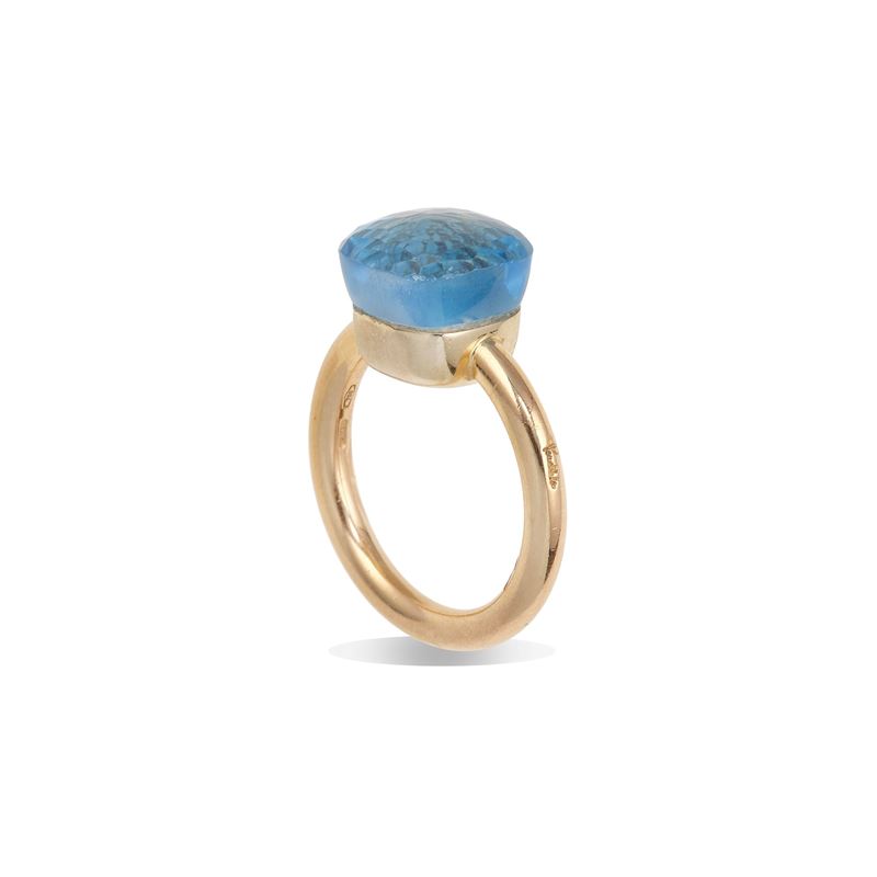 Blue topaz and gold “Nudo” ring. Signed Pomellato