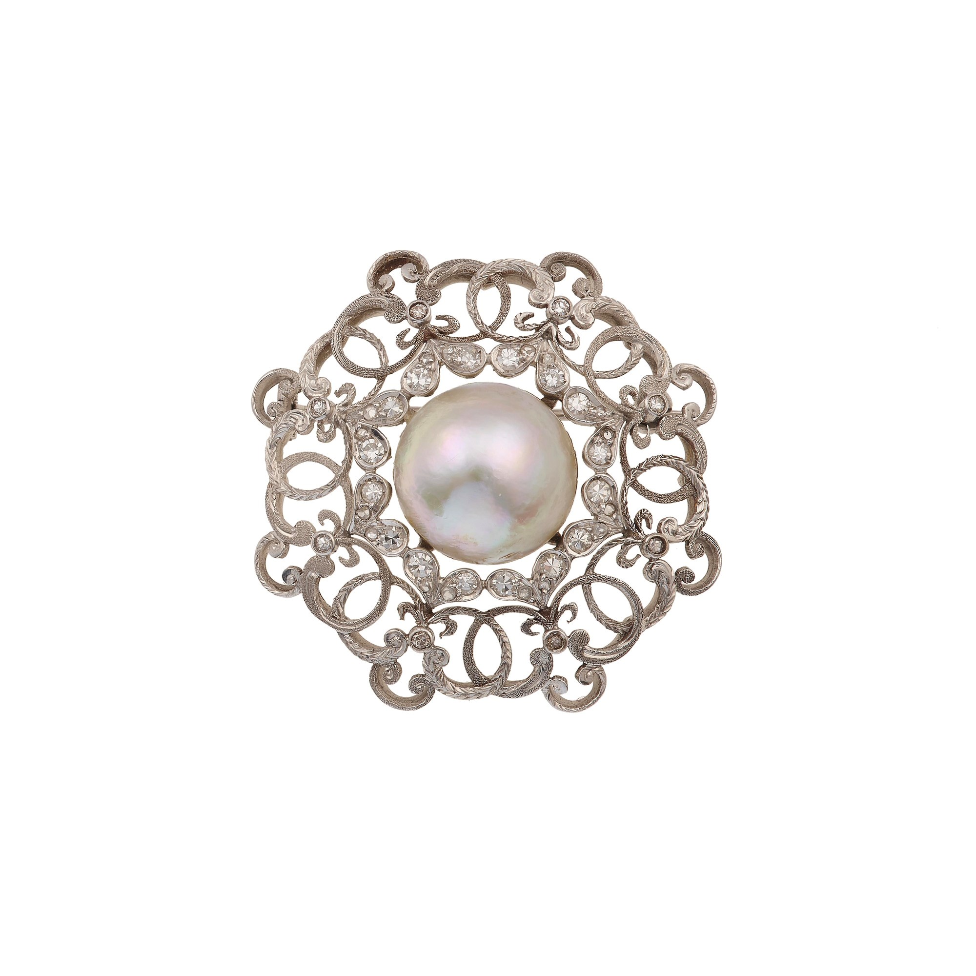 Diamond, mabé pearl and gold brooch
