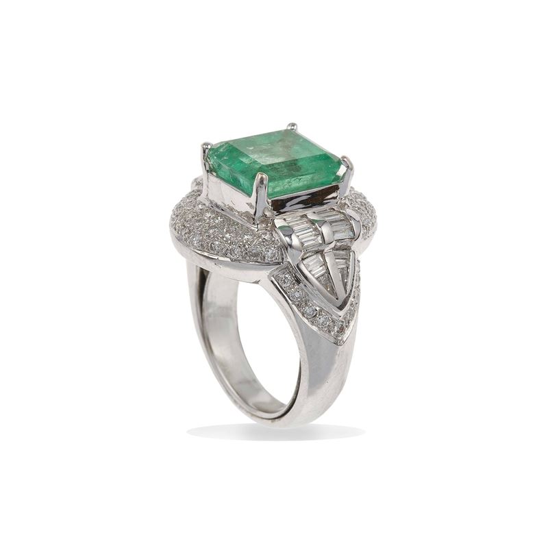 Emerald, diamond and gold ring