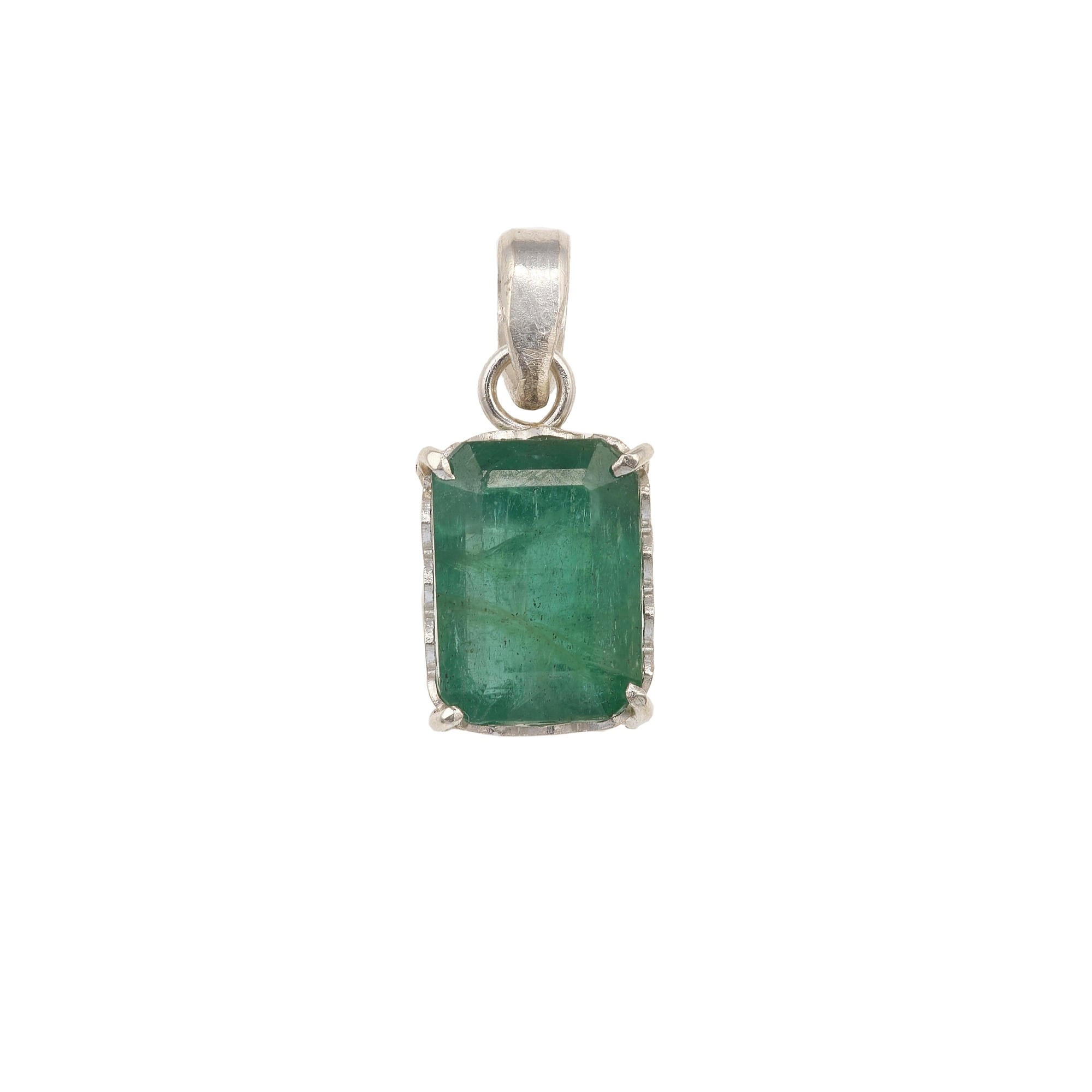 Emerald weighing 7.74 carats and silver pendent. Gemmological Report IGI Antwerp n. 726521820
