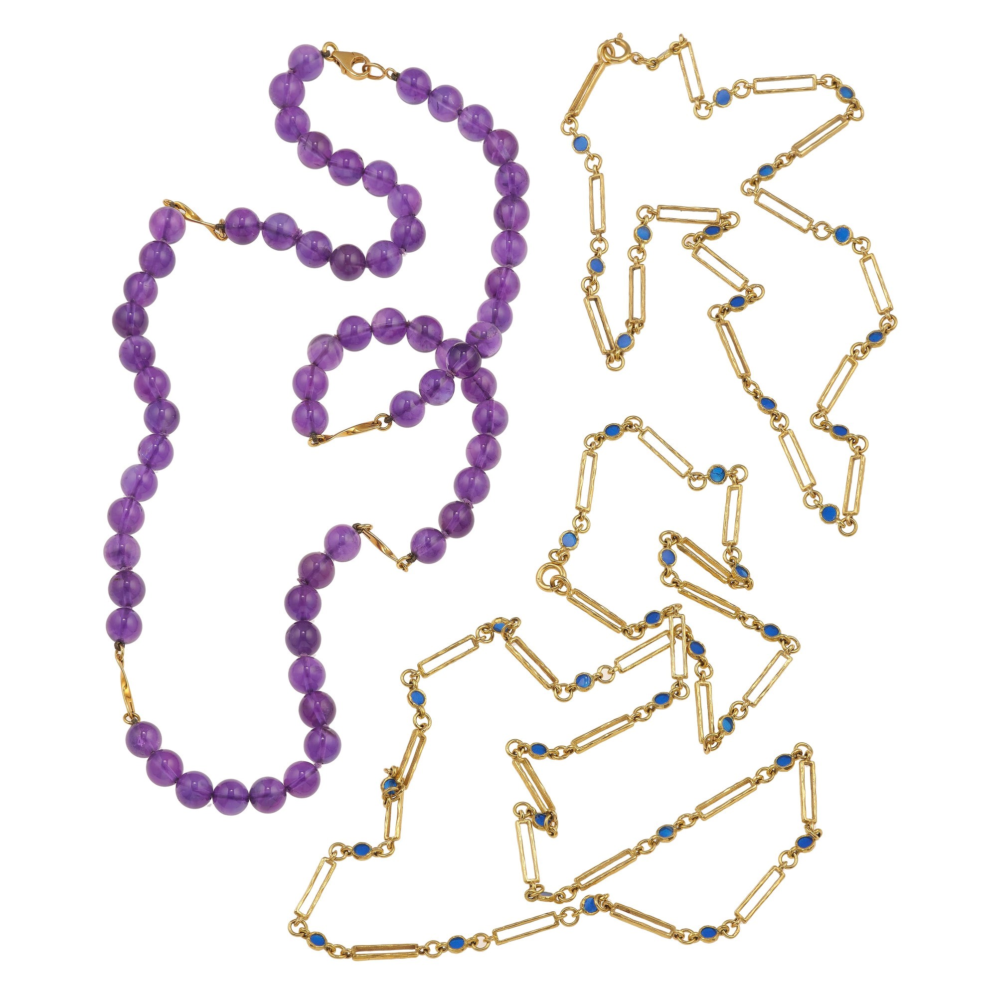 two enamel necklace: gr. 62,5 cm length 53,0 cm and 88,0 cm