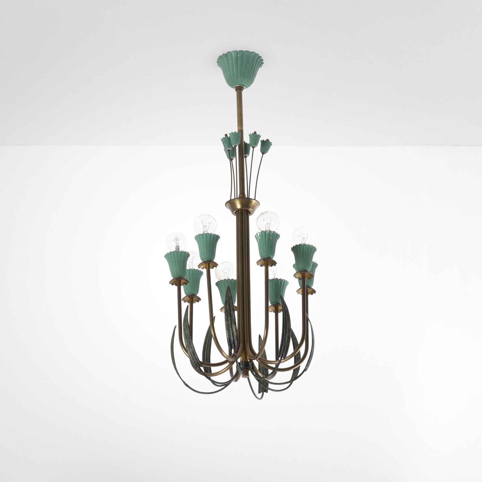 Struttura in ottone e metallo laccato.