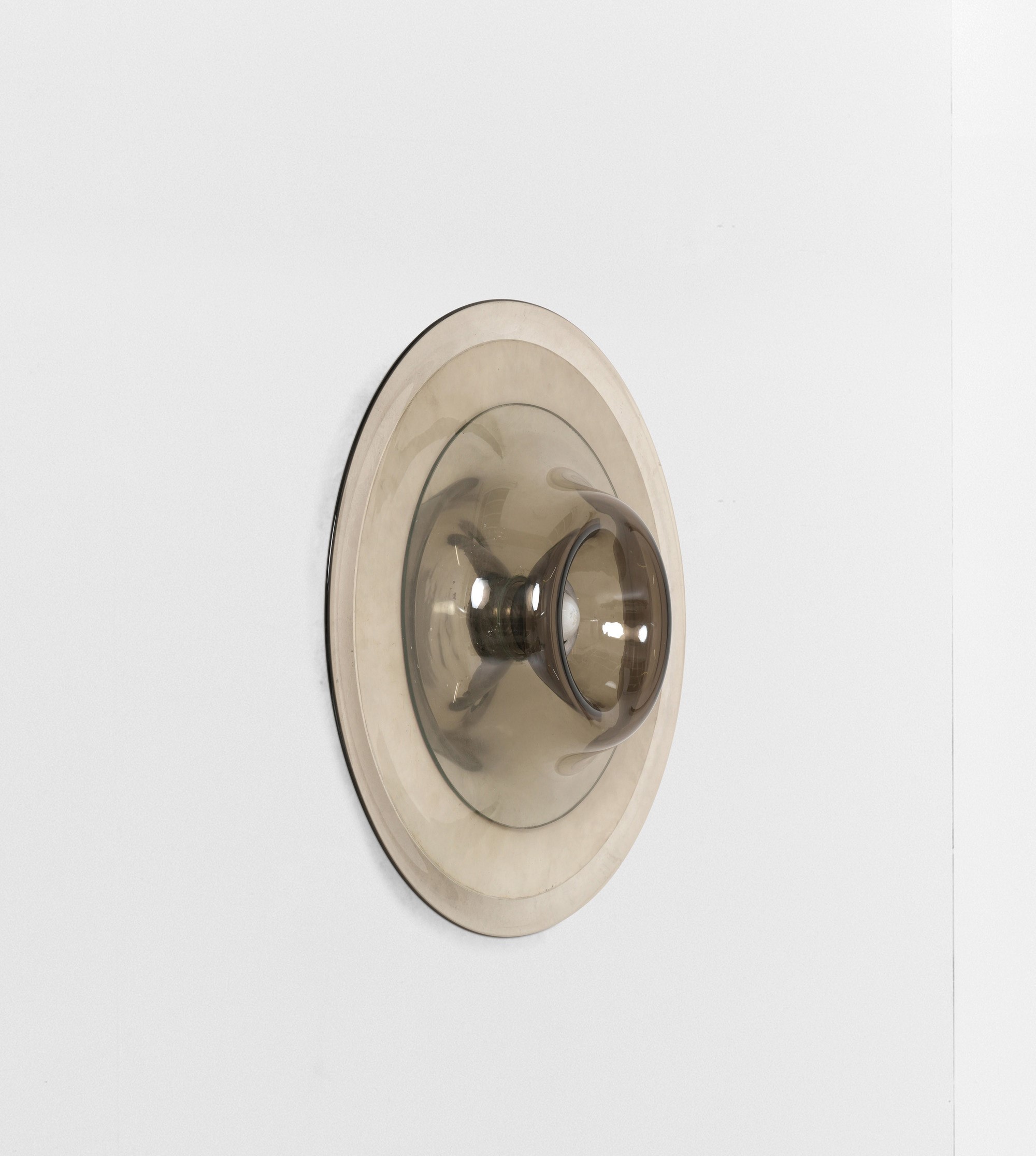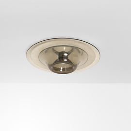 Struttura in metallo cromato e diffusore in vetro di Murano fumé.